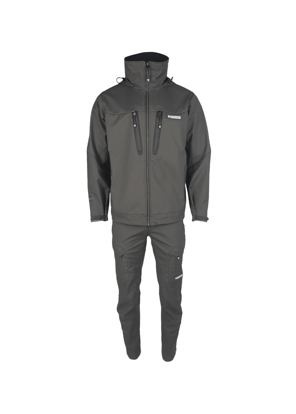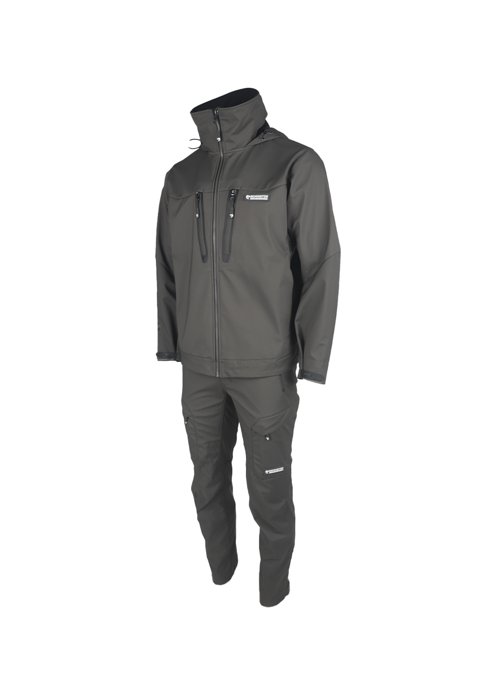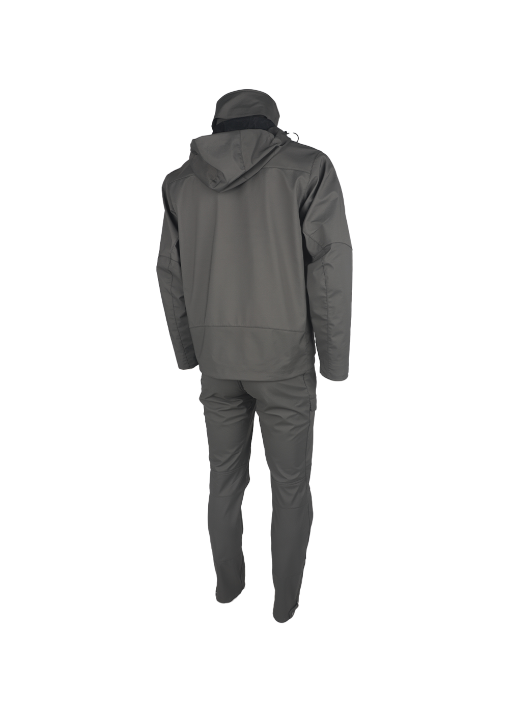 Костюм Remington Fish Place выполнен из прочного нейлона с внутренней стороны, дублированного флисом. Мембрана Climatic Pro с паропроницаемостью 8 000 г/м²/24 ч и водонепроницаемостью 5 000 мм защищает от ветра и осадков. Регулировки на кулису и велкро позволяют подогнать костюм Remington Fish Place под параметры любой фигуры и дополнительно защитить от непогоды. 11 карманов: 7 в куртке, 4 в брюках позволяют удобно разместить личные вещи. Молния на низу брюк позволяет использовать их с разными типами обуви. Костюм Remington Fish Place был разработан совместно с рыболовами для учета всех их потребностей. Серый цвет костюма универсальный и практичный для рыбалки.