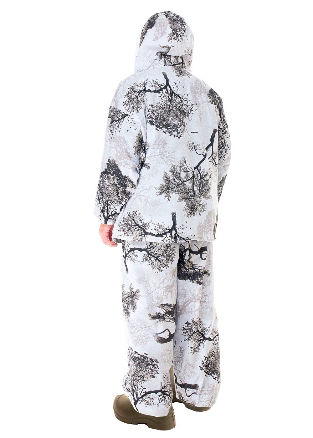 Зимний маскировочный костюм "Метель". Для зимней охоты. Одевается поверх зимней утепленной одежды. Предназначен для маскировки в зимнем лесу, на заснеженном поле. В нем вы не будете цепляться за ветки деревьев.