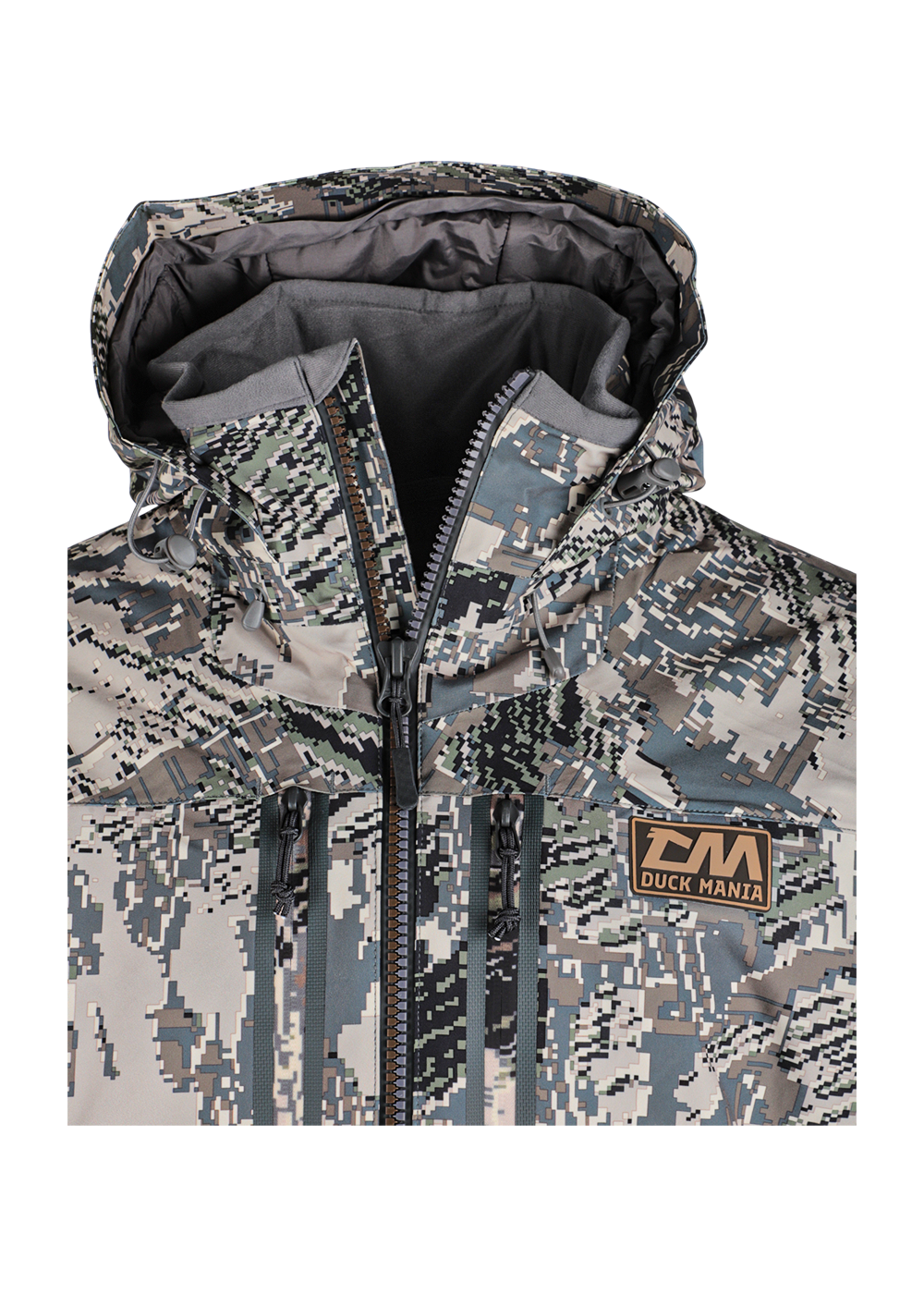 Костюм MARSHALL от Duck Mania (модель C3020-V2 в камуфляжной расцветке GR) — профессиональная охотничья экипировка премиум-класса для эксплуатации в сложных погодных условиях. Костюм изготовлен из современной 3L мембранной ткани Duck Mania «GOLD» с показателями влагоотведения 15000/20000, оснащен утеплителем FELLEX и рассчитан на температурный режим от +5°C до -15°C. В конструкцию входят проклеенные водонепроницаемые швы, регулируемый капюшон, анатомический крой для свободы движений и усиленные зоны в местах повышенного износа. Костюм оборудован системой вентиляции, множеством функциональных карманов (включая карго-карманы для патронов и утепленные карманы на магнитах), а также защитой от ветра благодаря высокой стойке и микрофлисовой отделке воротника. Комплект состоит из куртки с регулируемыми манжетами и полукомбинезона с системой подтяжек, что делает его идеальным выбором для охоты, длительных засидок и работы в болотистой местности.