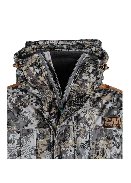 Костюм зимний «Командор» от Duck Mania (модель C3010-V2 в расцветке SZ) — профессиональная экипировка для эксплуатации в условиях экстремального холода до -30°C. Костюм оснащен современной мембраной Bone Dry 10000/10000, утеплен материалом THERMOFIBER плотностью 220 г/м², имеет проклеенные швы и отделку из поларфлиса. Конструкция включает утепленный несъемный капюшон, магнитные карманы, защитные вставки из материала Оксфорд 600D в области колен и сидения, а также специальный санитарный клапан. Костюм особенно эффективен в условиях сурового климата, активно используется в регионах с экстремально низкими температурами, обеспечивает комфорт при длительном ношении благодаря продуманной эргономике и качественным материалам.