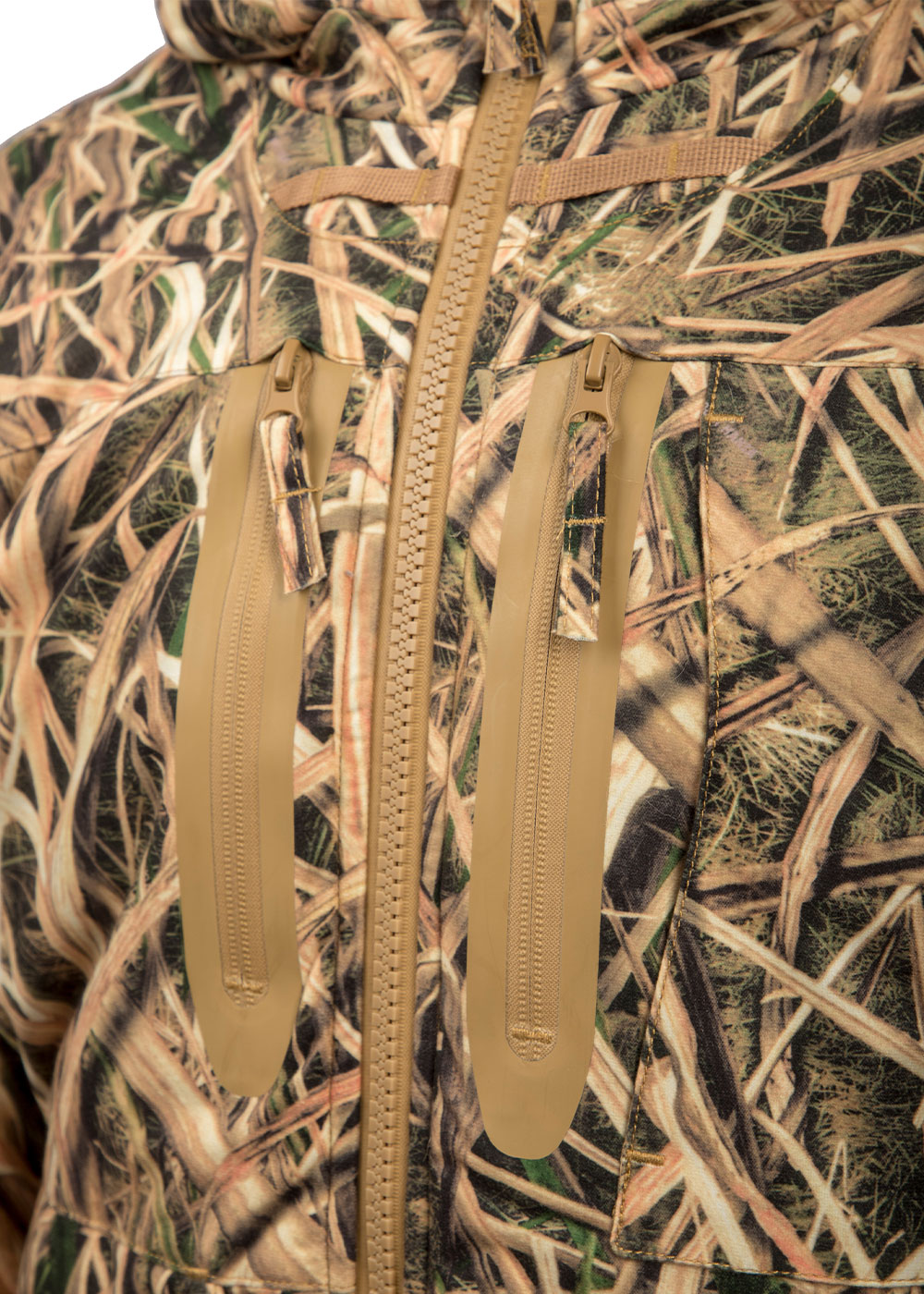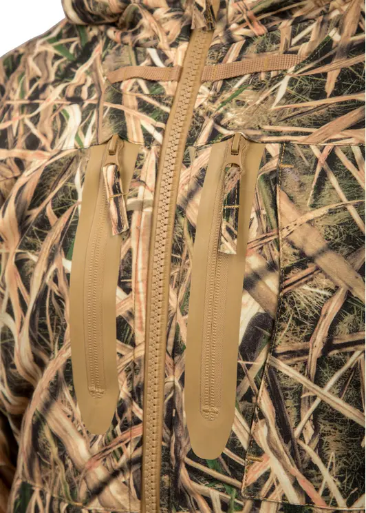 Костюм предназначен для охоты на водоплавающую дичь. Если костюм Командор – это максимальная защита от холода при максимальном комфорте, то JAGUAR – это прежде всего костюм для активной охоты, максимально комфорта в динамике, при морозах до -15С при этом карманы с дополнительной отделкой для стойкости к воде, чтобы и в дождь остаться сухим. Температура комфорта от -15 до 5С. На 20% легче костюма Командор. Для удобства туалетных процедур предусмотрен санитарный карман в районе сидения.