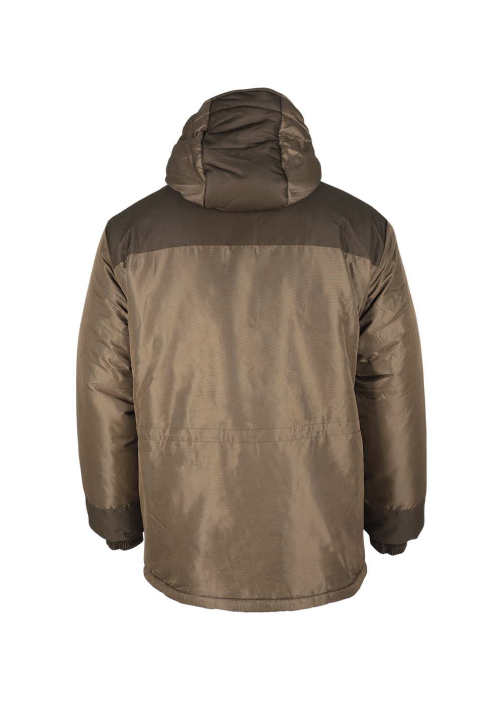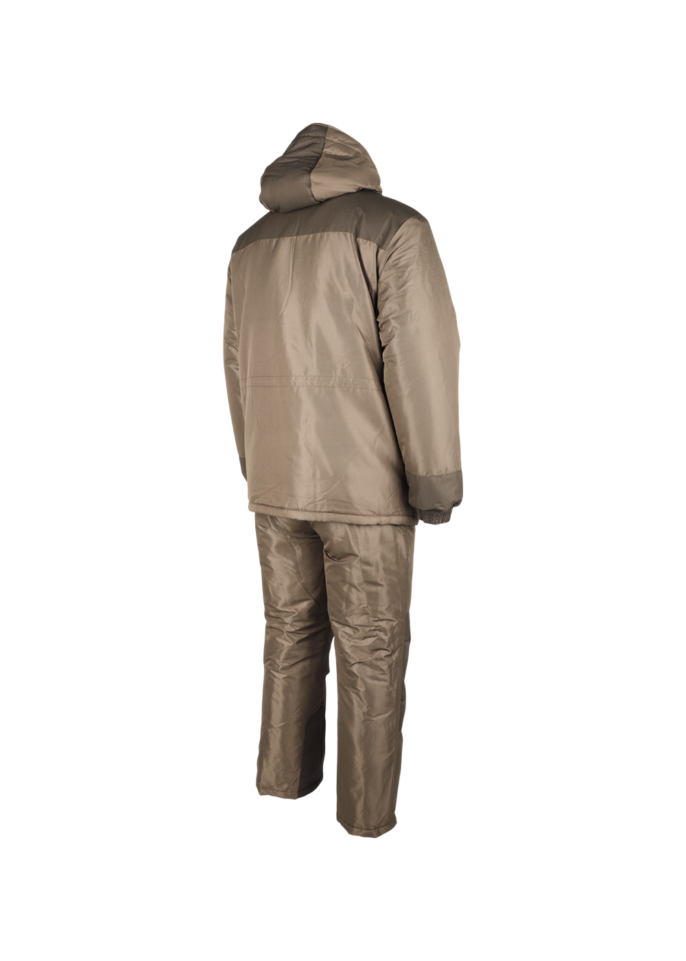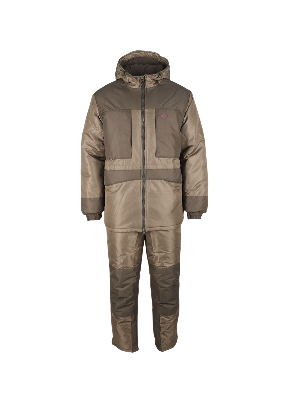 Зимний костюм «Егерь» в расцветке «Кошачий глаз» предназначен для работы и активного отдыха при экстремально низких температурах до -45°C. Хаки-окрас обеспечивает отличную маскировку в природных условиях. Костюм изготовлен из современной функциональной ткани с повышенными показателями защиты от влаги и ветра, дополнен утеплителем для максимального сохранения тепла. Конструкция включает куртку со съёмным капюшоном, удобной системой вентиляции и функциональными карманами, а также полукомбинезон с регулируемыми элементами. Модель разработана с учётом необходимости свободного движения и длительного пребывания на морозе, подходит для охоты, рыбалки и других видов зимней активности.