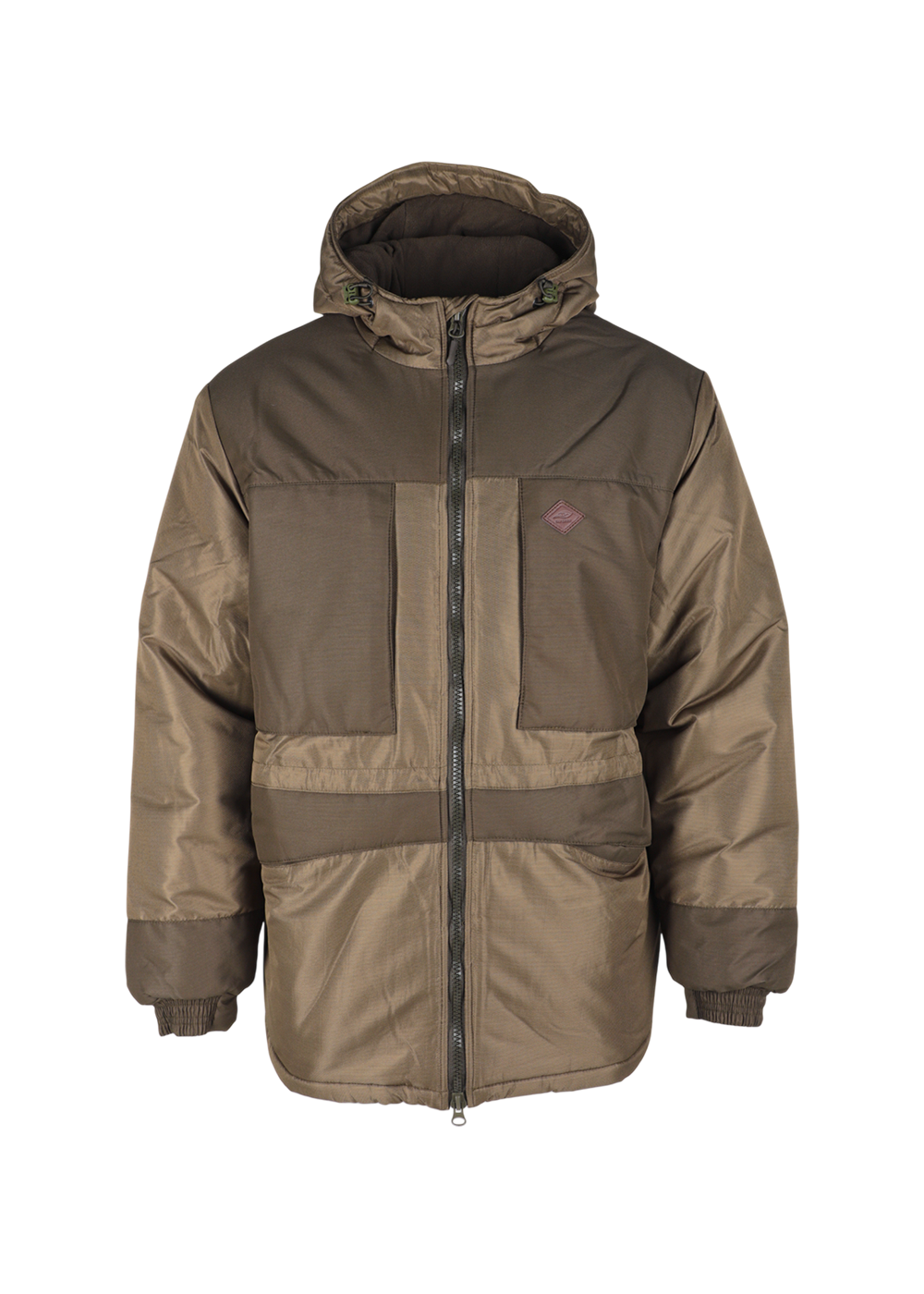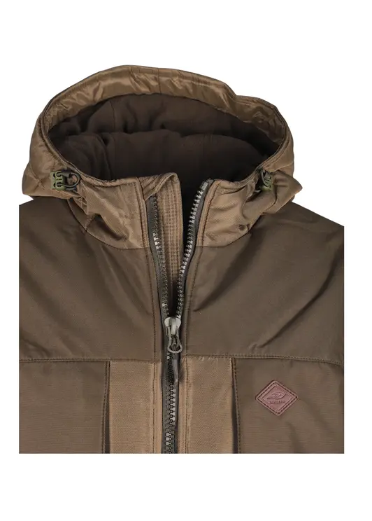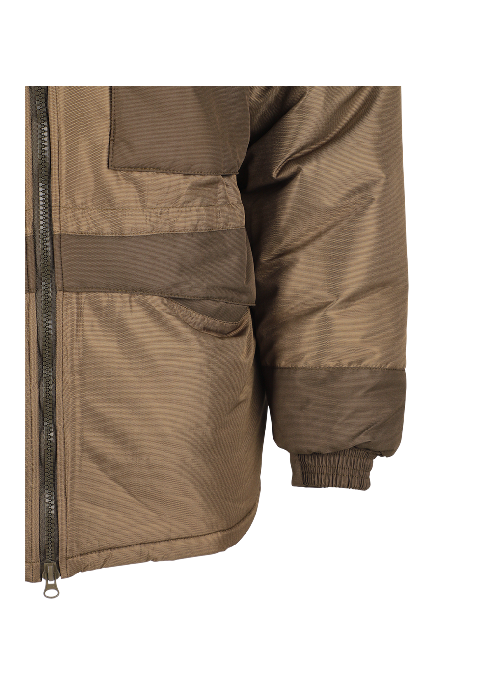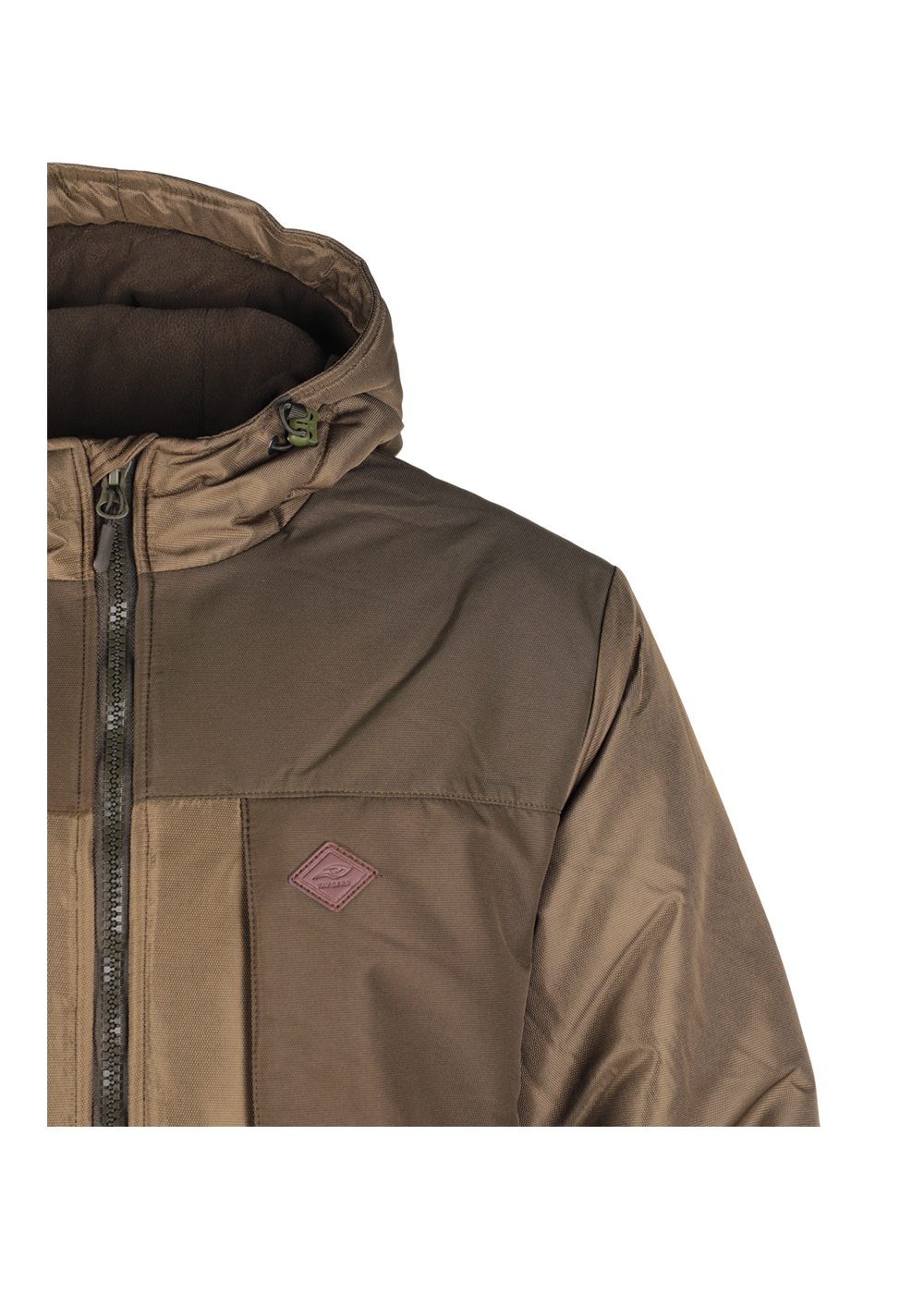 Зимний костюм «Егерь» в расцветке «Кошачий глаз» предназначен для работы и активного отдыха при экстремально низких температурах до -45°C. Хаки-окрас обеспечивает отличную маскировку в природных условиях. Костюм изготовлен из современной функциональной ткани с повышенными показателями защиты от влаги и ветра, дополнен утеплителем для максимального сохранения тепла. Конструкция включает куртку со съёмным капюшоном, удобной системой вентиляции и функциональными карманами, а также полукомбинезон с регулируемыми элементами. Модель разработана с учётом необходимости свободного движения и длительного пребывания на морозе, подходит для охоты, рыбалки и других видов зимней активности.