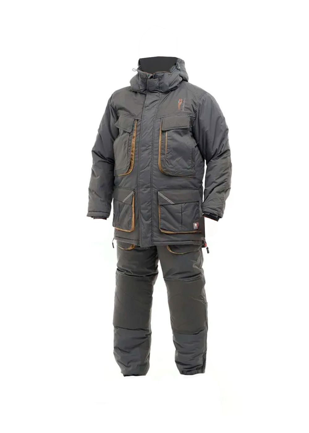 Зимний костюм “Граф” изготовлен из таслана в сером цвете. Рассчитан для эксплуатации при температуре до -45°C, что делает его идеальным выбором для зимней рыбалки или охоты. Комплект состоит из куртки и высоких полукомбинезонов.