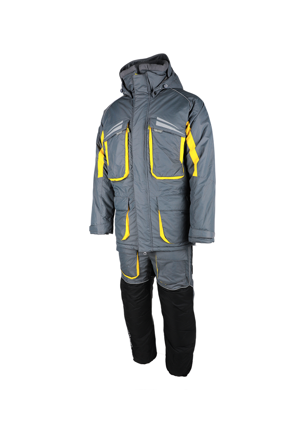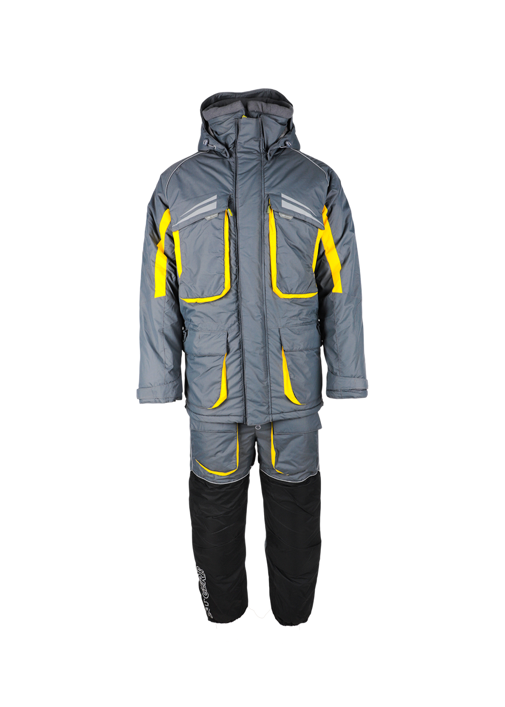 Зимний костюм «Камчатка» в цветовом решении графит-жёлтый — профессиональная модель для экстремально низких температур до −45°C, выполненная из прочного материала Таслан с водоотталкивающей пропиткой. Конструкция включает утеплённую куртку с капюшоном и полукомбинезон, разработанные с учётом суровых климатических условий. Материал обладает высокими показателями защиты от ветра и влаги, при этом обеспечивая хорошую паропроницаемость. Костюм оснащён функциональными карманами, регулируемыми манжетами и кулисами для оптимальной посадки по фигуре, а также светоотражающими элементами для безопасности в тёмное время суток. Внутренний утеплитель гарантирует надёжную теплоизоляцию, а эргономичный крой не стесняет движений при активном использовании. Модель идеально подходит для зимней охоты, рыбалки и экспедиций в условиях экстремального холода.