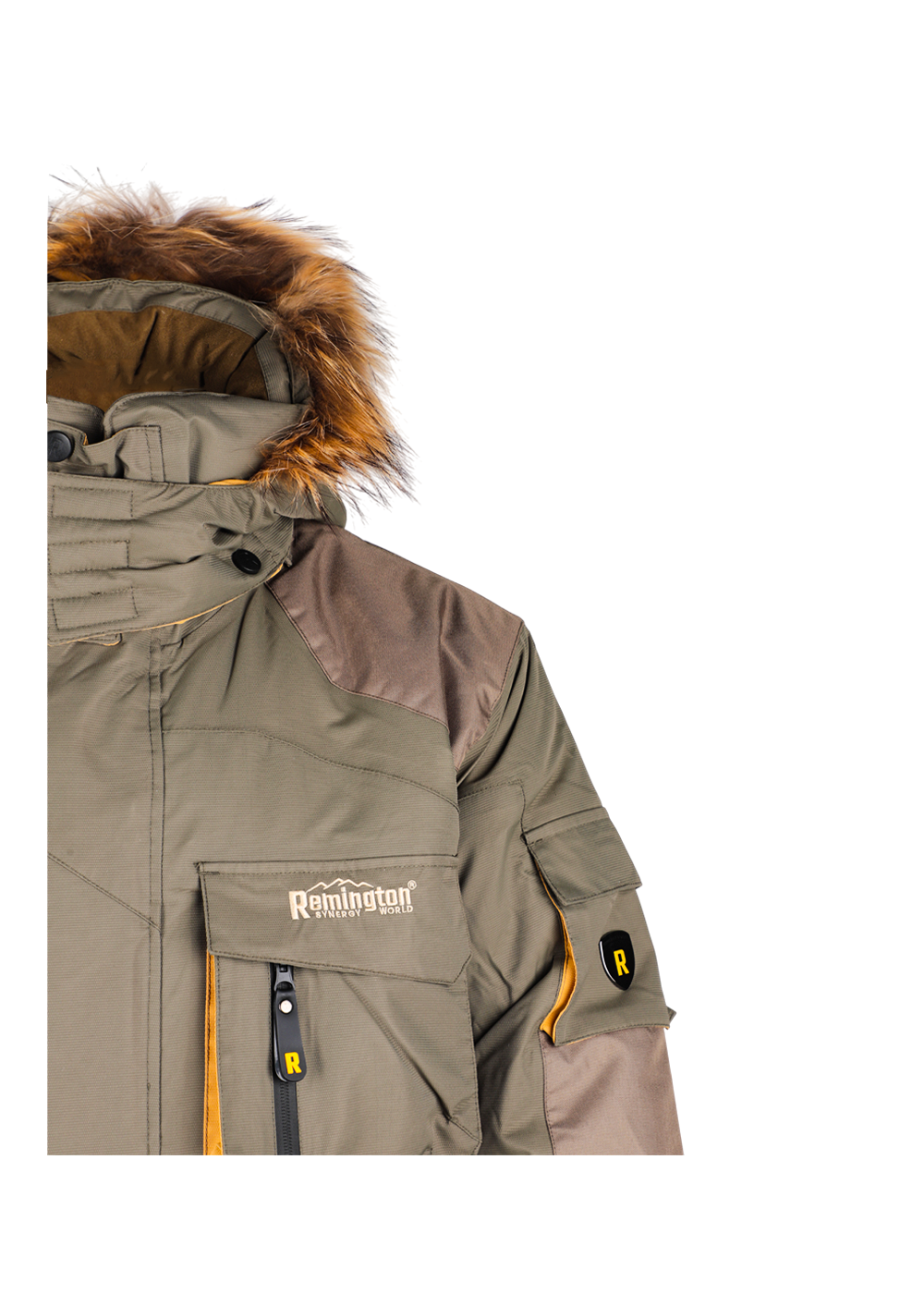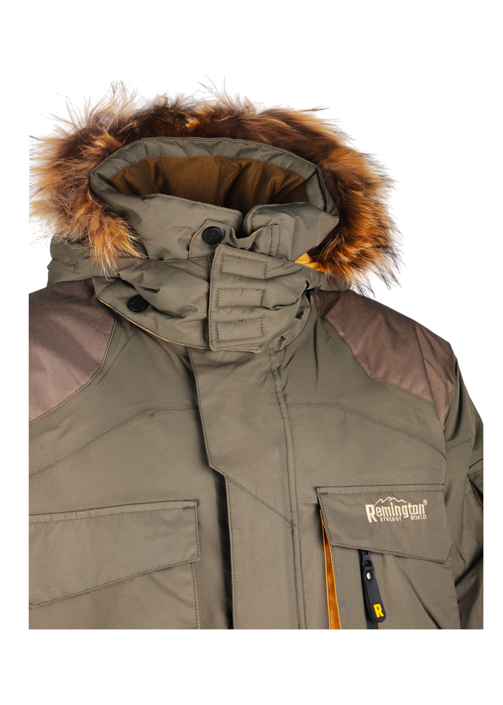 Костюм Remington Real fishing DOWN — это экипировка для рыбалки и повседневного ношения в холодное время года, оснащённая натуральным пуховым утеплителем для максимальной теплозащиты. Модель сочетает в себе классический дизайн и современные технологии: внешний слой выполнен из прочного водоотталкивающего материала, а внутренняя часть утеплена качественным пухом с высоким показателем Fill Power.