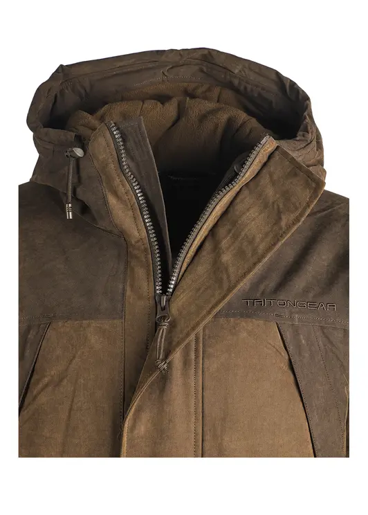 Зимний костюм STRONG -45 от TRITONGEAR в коричневом норвежском цвете — профессиональная экипировка для экстремальных температур до -45°C, изготовленная из современной мембранной ткани HI-TEX Pro с показателями водостойкости и паропроницаемости 10000/10000. Костюм включает куртку и брюки из износостойкого 100% полиэстера с усиленными элементами из комбинации нейлона и полиэстера, оснащён утеплителем TRITERM, который на 30% легче обычного синтепона, и флисовым подкладом для дополнительного комфорта. Система защиты от ветра и влаги в сочетании с продуманной конструкцией обеспечивает сохранение тепла при активном использовании