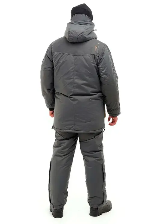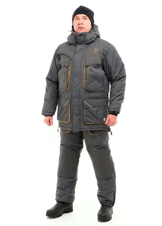 Зимний костюм “Граф” изготовлен из таслана в сером цвете. Рассчитан для эксплуатации при температуре до -45°C, что делает его идеальным выбором для зимней рыбалки или охоты. Комплект состоит из куртки и высоких полукомбинезонов.