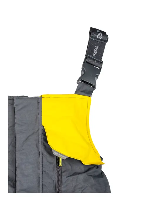 Полукомбинезон имеет анатомический крой с частичной сборкой на поясе и под коленями. Такие детали помогают обеспечить свободу движения. Широкие лямки полукомбинезона можно легко скинуть благодаря креплению на фастексе. На бедрах расположены удобные накладные карманы. Они позволяют держать под рукой все самое необходимое.