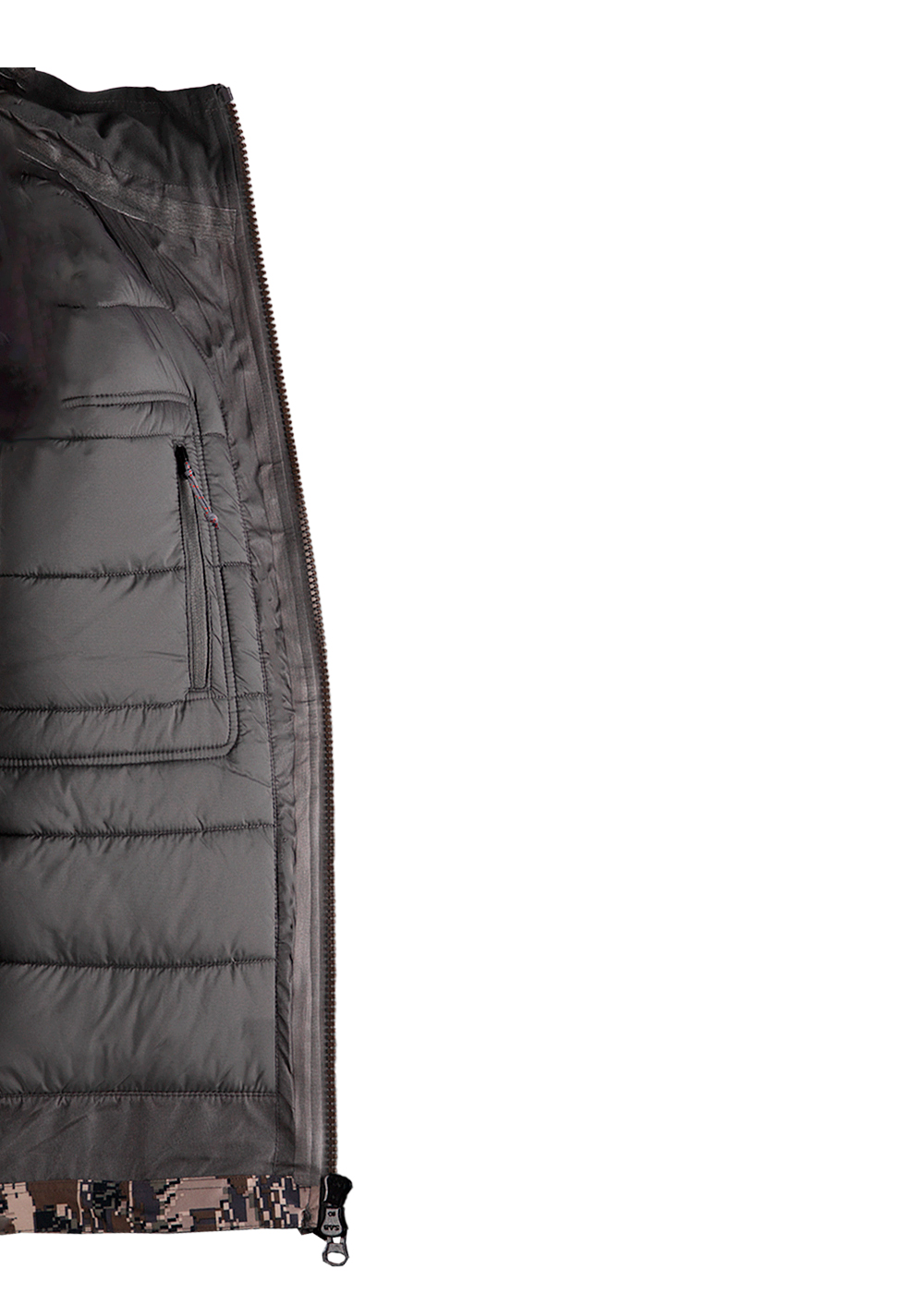- Особенности: два нагрудных кармана для патронов, утеплённые карманы на куртке, высокая стойка, флисовая отделка воротника, усиления ткани на местах повышенного трения