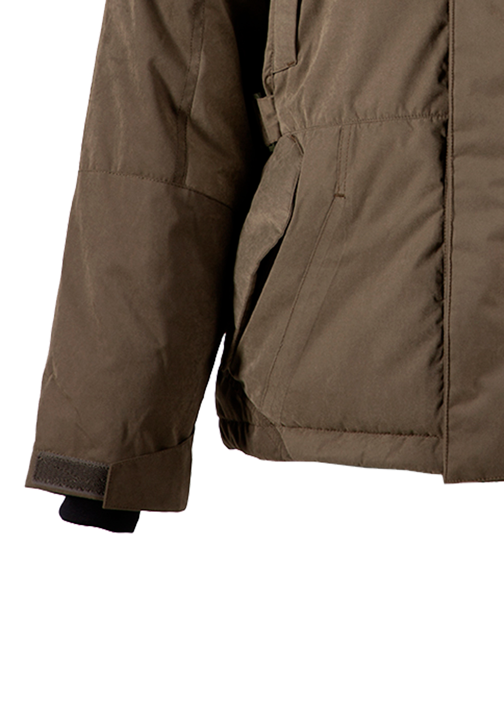 Костюм состоит из куртки и полукомбинезона. Куртка оснащена центральной молнией, двойным ветрозащитным клапаном, регулируемым капюшоном и внутренними карманами. Полукомбинезон имеет два накладных кармана и эластичный пояс. Костюм FAVORITE -30 хаки создан на базе популярной серии PREMIER с большим количеством доработок и улучшений. Он разработан с акцентом на снижение веса и обеспечение свободы движений.