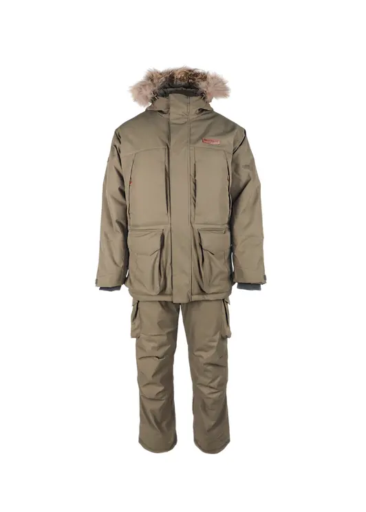 Костюм состоит из функциональной куртки и практичных брюк, выполненных из инновационного материала Twill с показателями мембраны 14000/23000 мм вод. ст. и специальной водоотталкивающей технологией DWR. Материал верха — 100% полиэстер плотностью 157 г/кв. м, дополненный подкладом из Microfleece и современным утеплителем WARMSET, обеспечивает превосходную теплоизоляцию и комфорт при носке