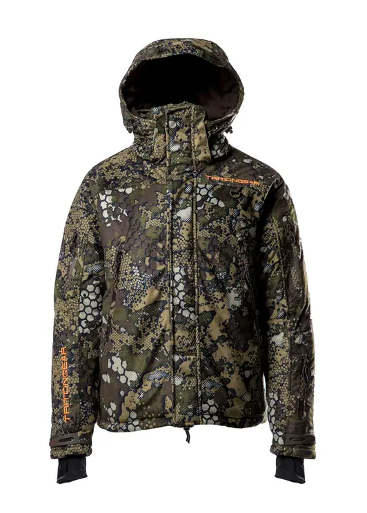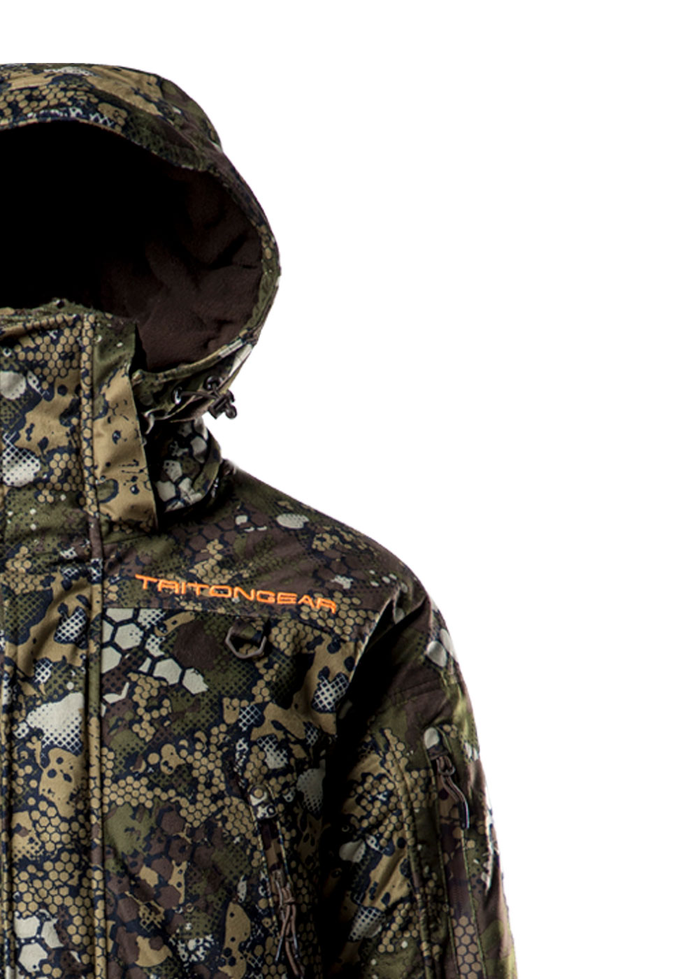 В комплект входит куртка с регулируемым капюшоном, воротник-стойкой, двухзамковой молнией и двумя боковыми карманами с флисом внутри. Один нагрудный карман имеет клапан на липучке и внутренний карман для документов. Рукава имеют манжеты с липучкой для регулировки и эластичные перчатки для дополнительного тепла.