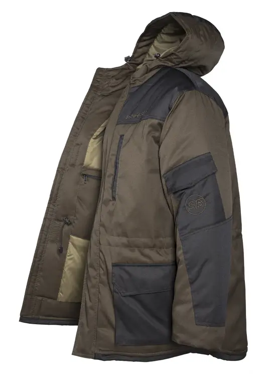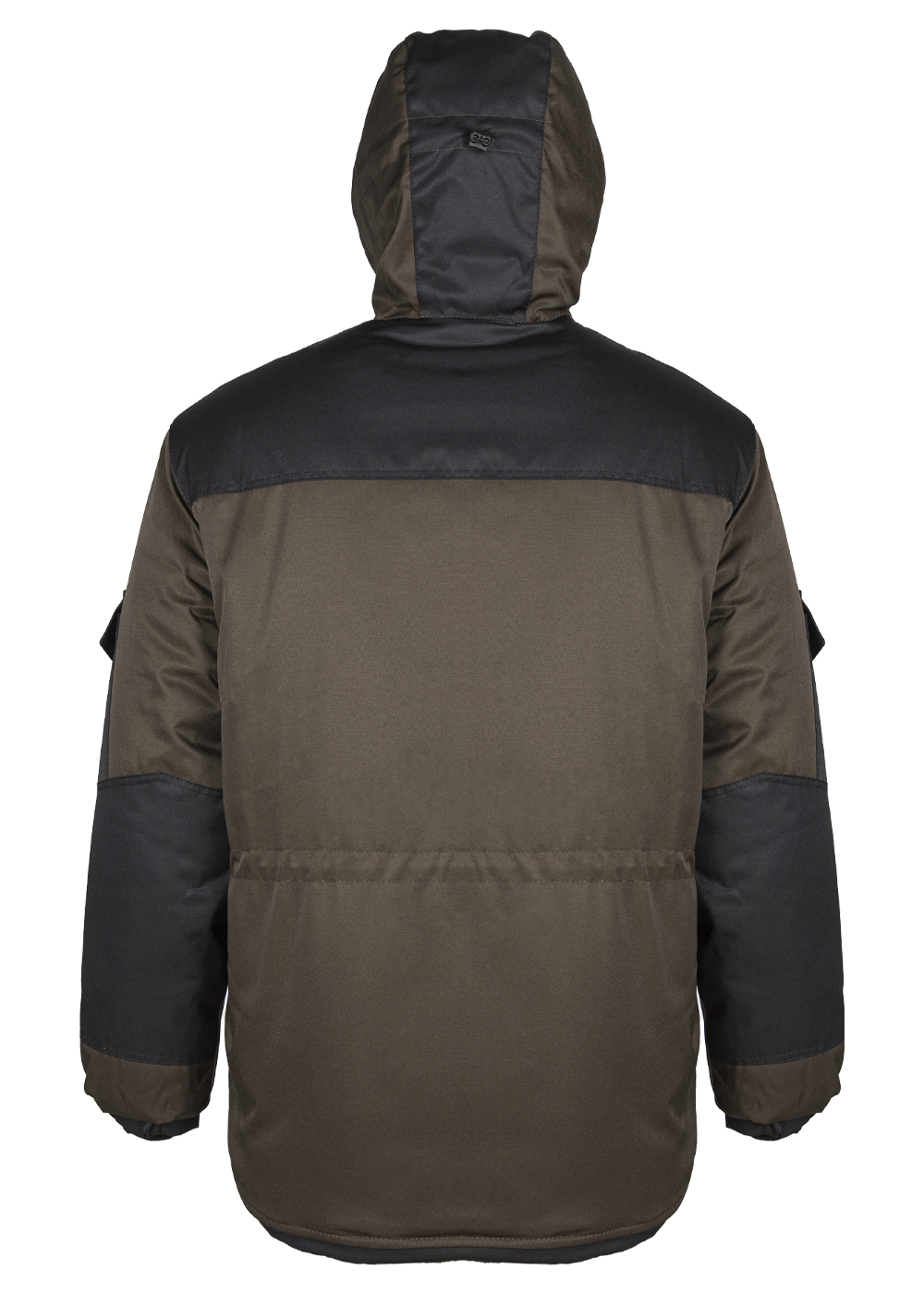 Утеплитель "синтепон", Подклад флис, Ткань грета, Цвет "Хаки". Производство Россия. Куртка: Удлиненная куртка имеет центральную двухзамковую молнию с ветрозащитной планкой на липах, регулируется кулисой с фиксатором по талии и по низу.