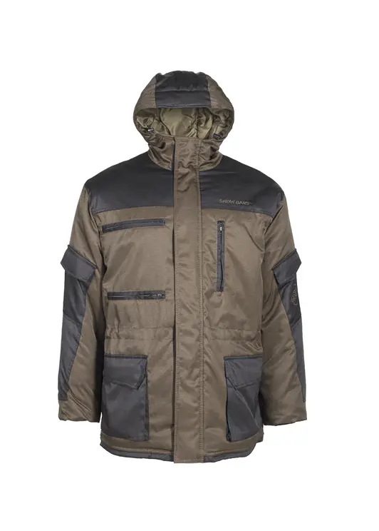Утеплитель "синтепон", Подклад флис, Ткань грета, Цвет "Хаки". Производство Россия. Куртка: Удлиненная куртка имеет центральную двухзамковую молнию с ветрозащитной планкой на липах, регулируется кулисой с фиксатором по талии и по низу.