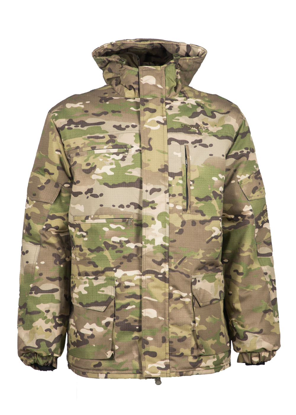Изготовленный из прочной ткани рипстоп, этот костюм обеспечивает высокую прочность и защиту от ветра, снега и влаги. Благодаря своей конструкции, ткань не скатывается и не пропускает холод.