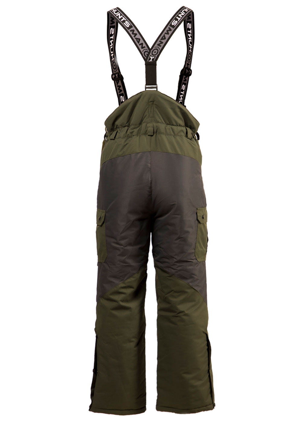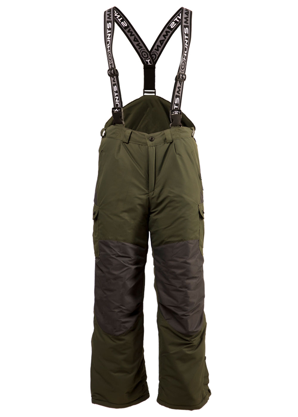 Брюки прямого кроя с регулируемыми бретелями и застежкой-молнией с ветрозащитным клапаном. Имеются два боковых кармана, два кармана на молниях на бедре и один карман сзади. Утеплитель – синтепон, плотность – 200 г/кв.м.