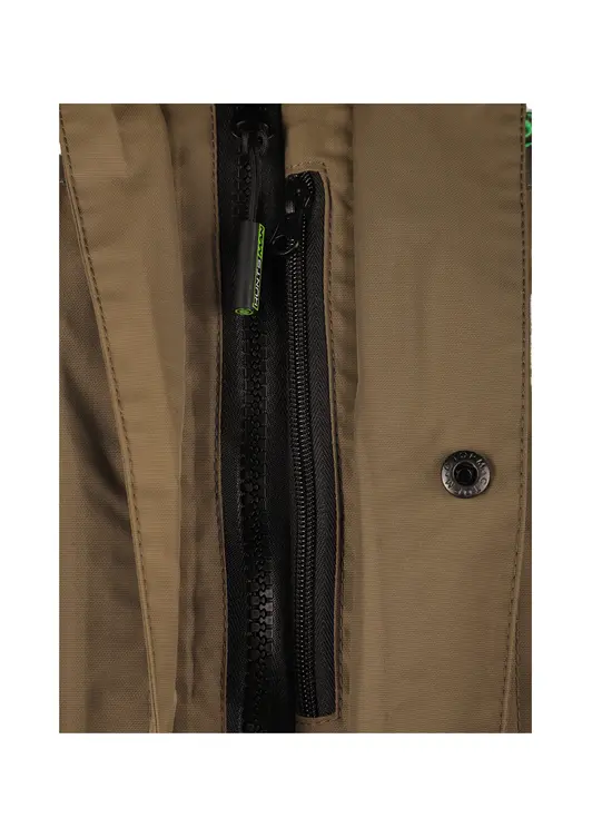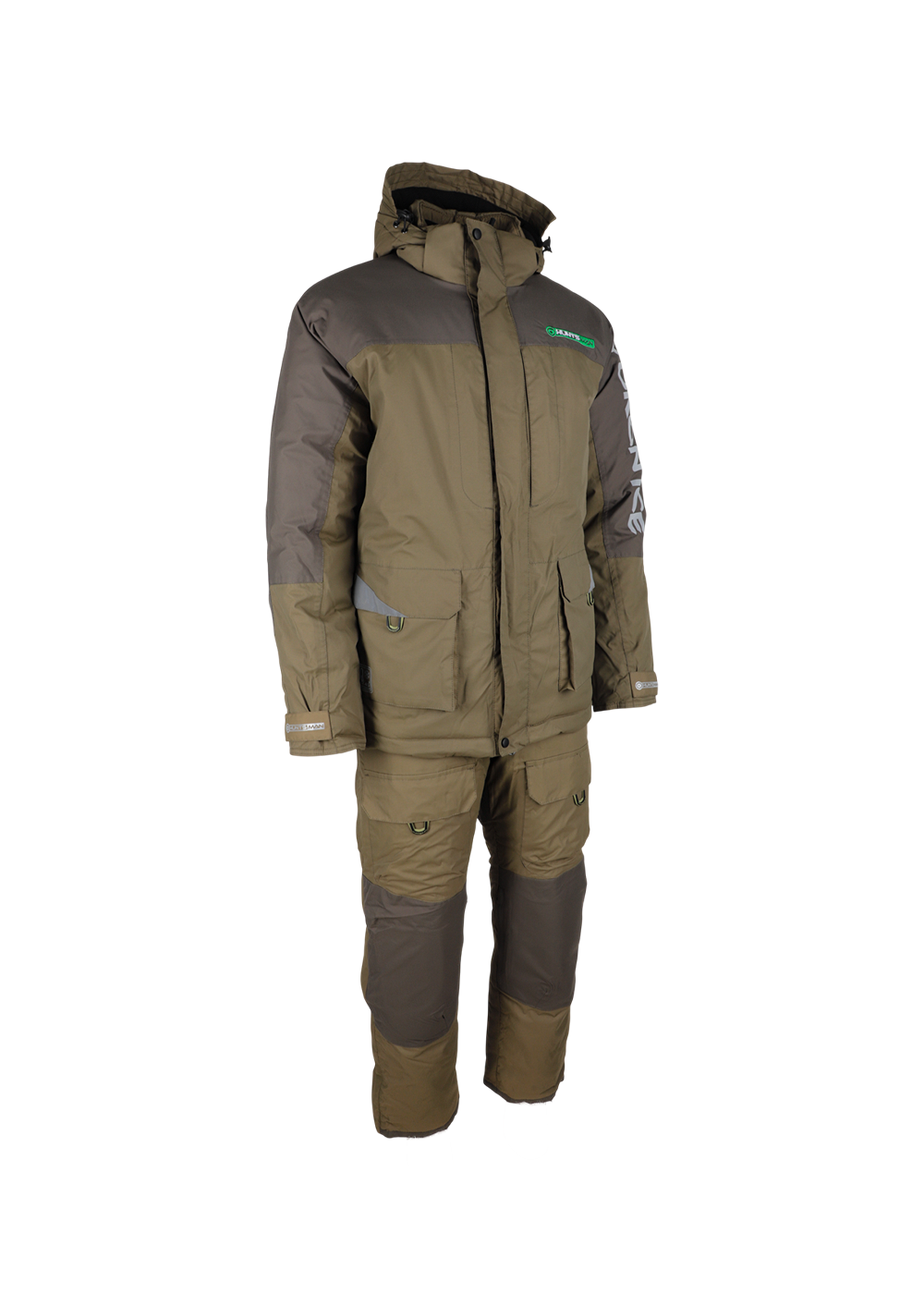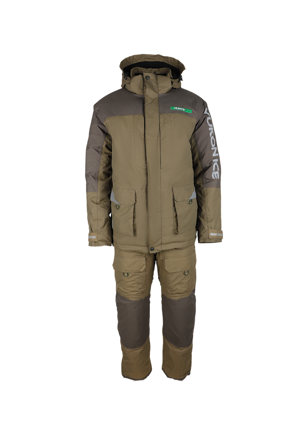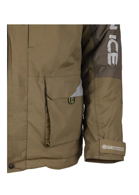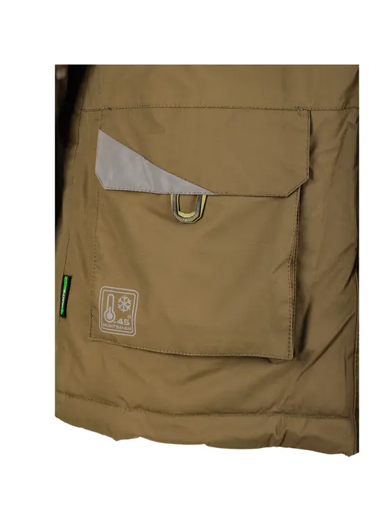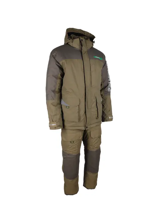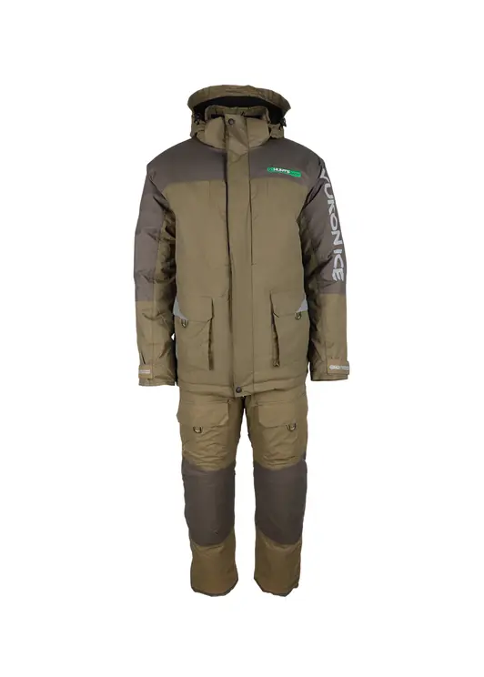 Зимний костюм Yukon Ice в цвете хаки изготовлен из современного материала Breathable с показателями водонепроницаемости и паропроницаемости 6000 единиц. Модель рассчитана на эксплуатацию при температуре до -45°C, включает куртку с двухзамковой молнией под двойной ветрозащитной планкой и полукомбинезон. Куртка оснащена вместительными карманами с отделкой из Polar Fleece, регулируемым капюшоном, утяжкой по низу и светоотражающими элементами. Полукомбинезон имеет снегозащитные гетры, накладки в области колен и седалища, регулируемые помочи и систему регулировки ширины низа штанин. Костюм обеспечивает полную защиту от влаги и комфорт при активном использовании в зимних условиях.