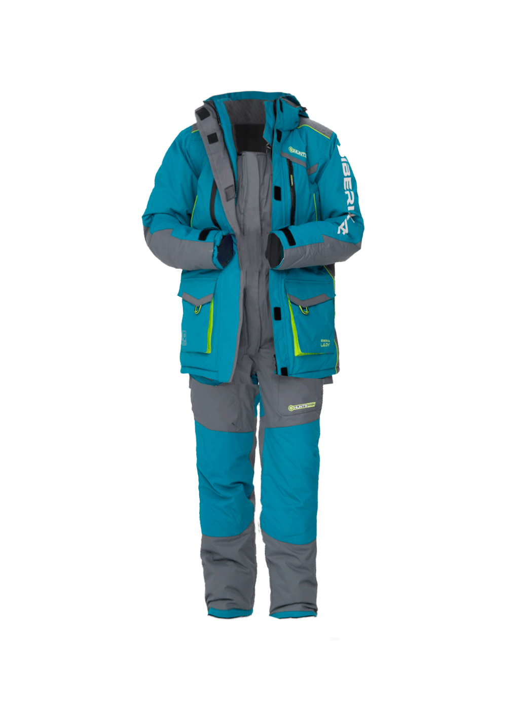 Зимний женский костюм Siberia Lady от бренда Huntsman изготовлен из мембранной ткани Breathable. Водопроницаемость материала составляет 6000 мм/м², а паропроницаемость — 6000 г/м²/24 часа. Костюм утеплён лёгким и пышным синтетическим материалом, а подкладка выполнена из мягкого флиса. В костюме предусмотрены усиленная ткань в быстро стираемых местах, проклеенные швы и влагостойкие молнии. Внутри нижней части штанин находятся снегозащитные гетры, которые удобно заправлять в сапоги. Костюм оснащён множеством функциональных карманов как снаружи, так и внутри, а также светоотражающими элементами для лучшей видимости в тёмное время суток.