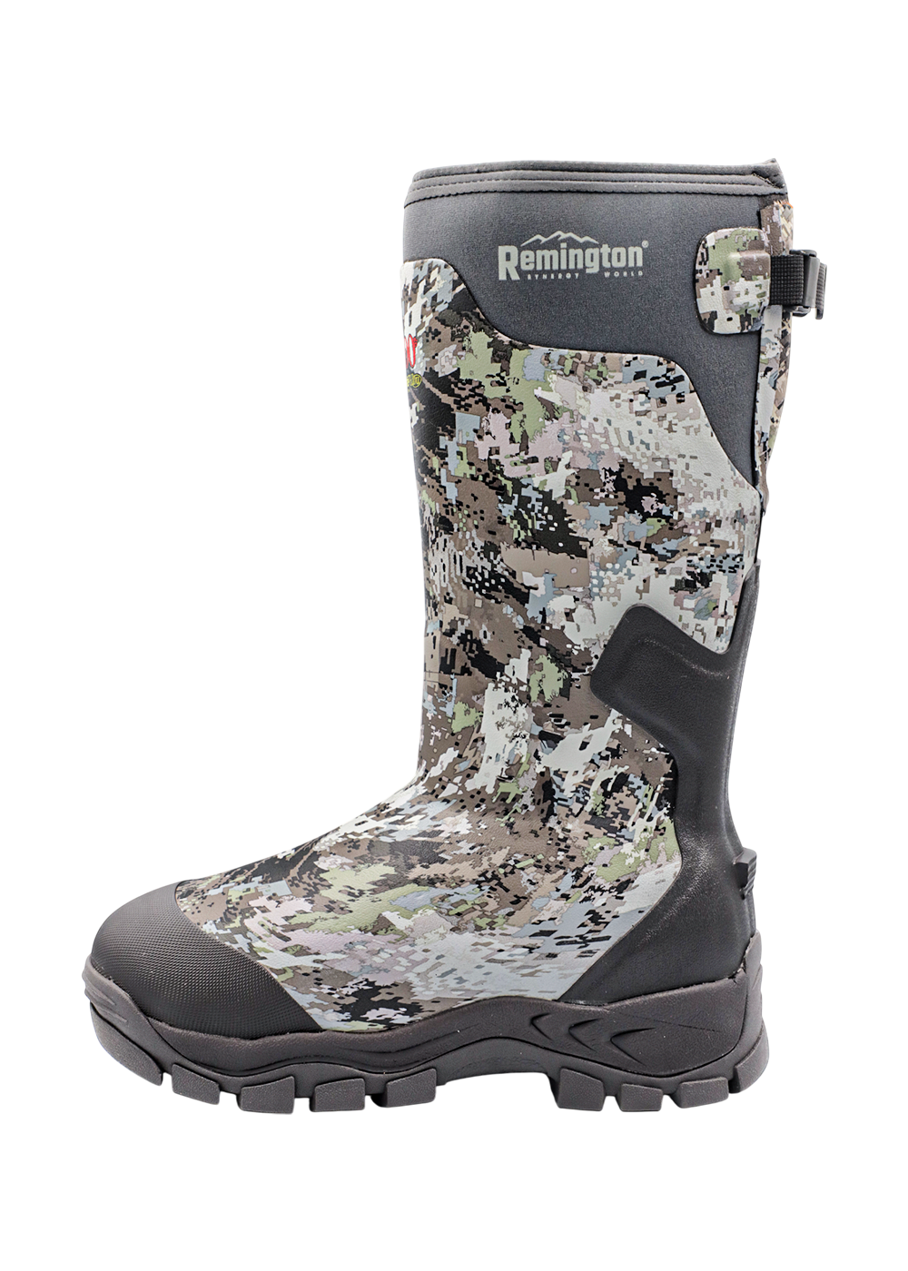 Сапоги Remington Wintering tall boots с утеплителем Thinsulate 1600g в камуфляжном исполнении Winter Forest представляют собой самую тёплую модель в линейке зимней обуви, разработанную специально для суровых условий эксплуатации. Конструкция сапог объединяет высококачественную резину, 5-миллиметровый неопрен и мощный утеплитель Thinsulate плотностью 1600 г, что обеспечивает надёжную защиту от холода при температурах до –25 °C.