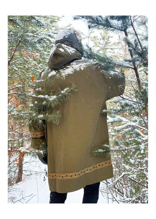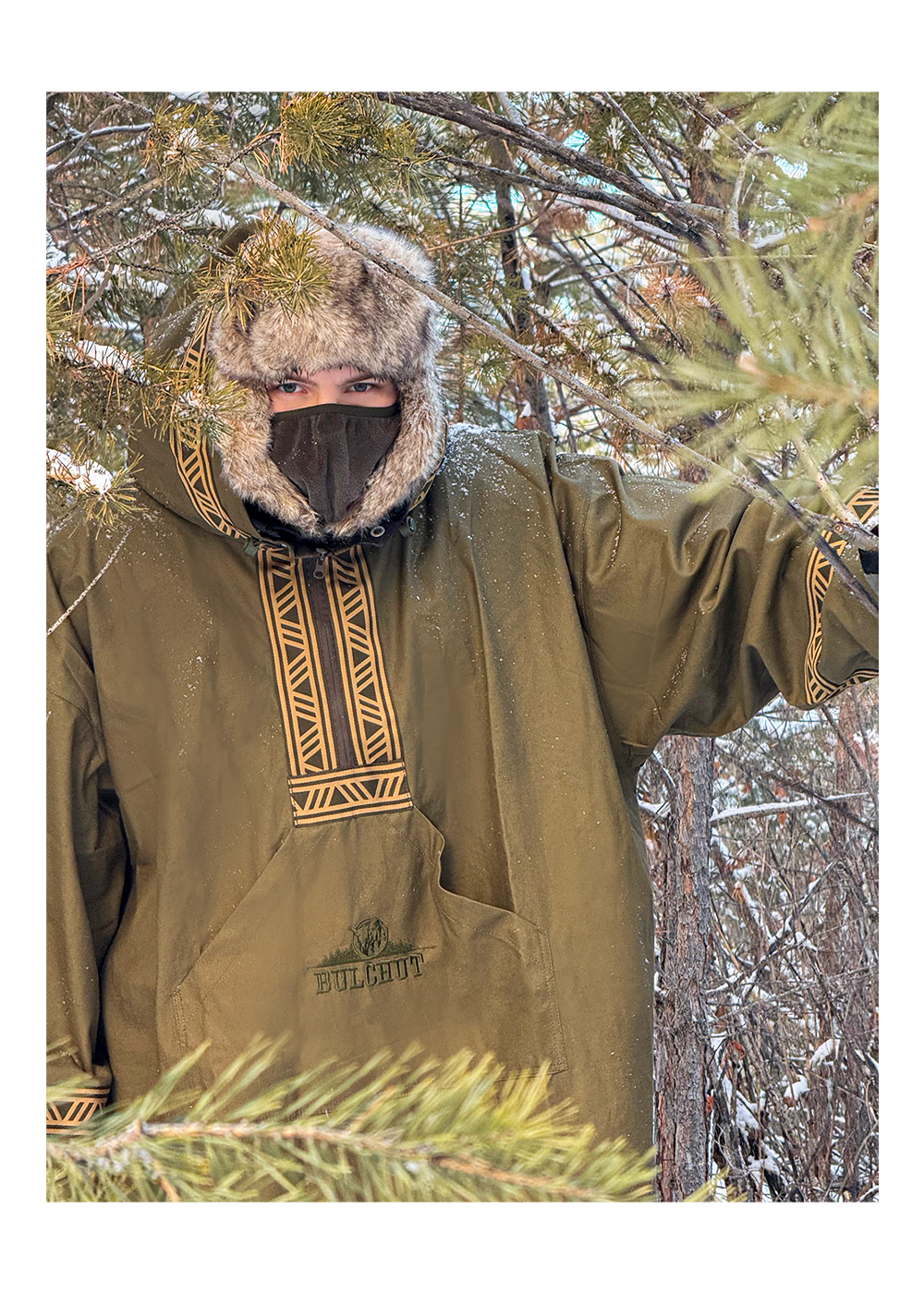 Анорак Камлейка Bulchut в цвете хаки представляет собой практичную верхнюю одежду, созданную по традиционной технологии с современными усовершенствованиями. Модель выполнена из прочной палаточной ткани, обеспечивающей надежную защиту от ветра и осадков.