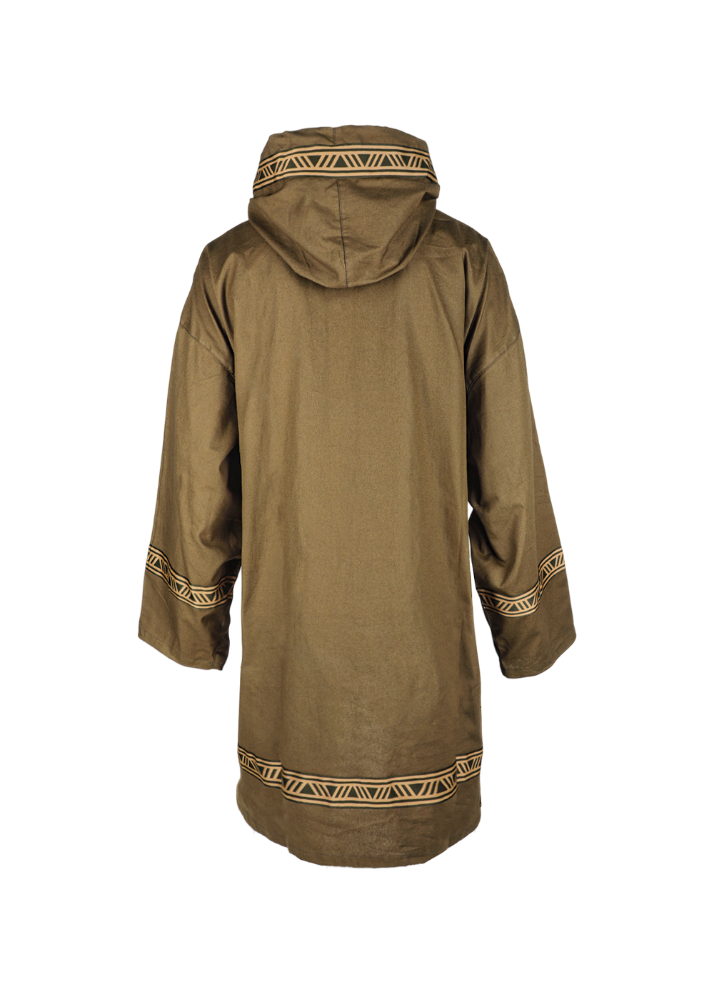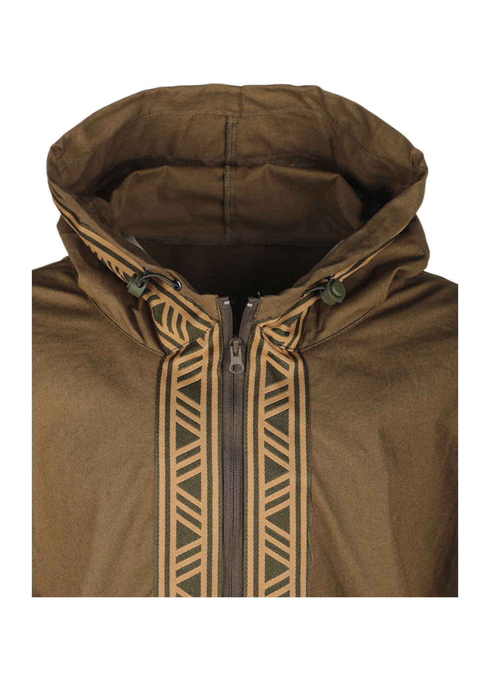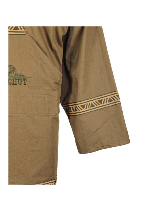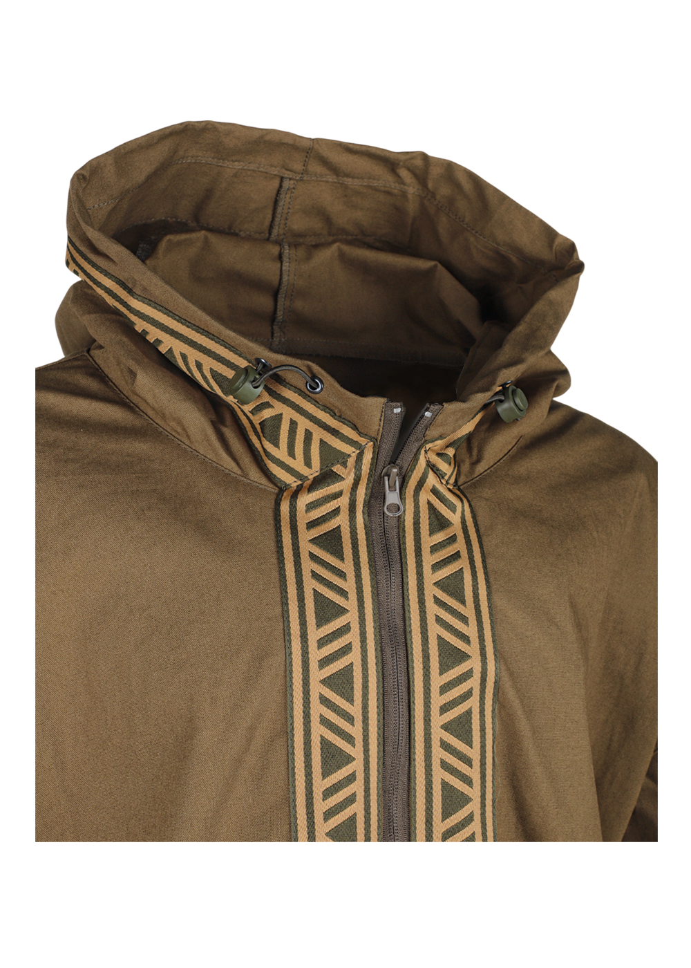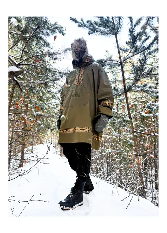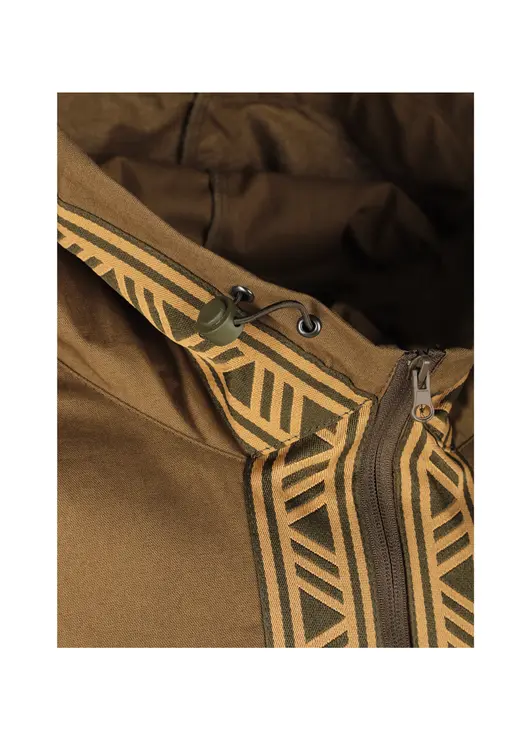 Анорак Камлейка Bulchut в цвете хаки представляет собой практичную верхнюю одежду, созданную по традиционной технологии с современными усовершенствованиями. Модель выполнена из прочной палаточной ткани, обеспечивающей надежную защиту от ветра и осадков.