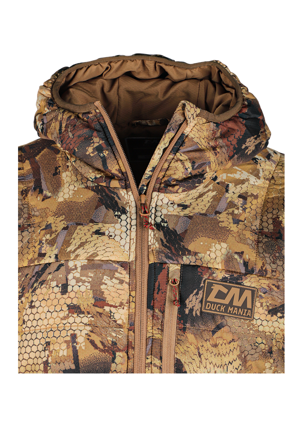 Куртка утеплённая GT от Duck Mania в камуфляжной расцветке COMB (модель С6053) — демисезонная верхняя одежда из премиального материала soft touch с DWR-пропиткой для защиты от влаги и загрязнений. Изделие оснащено влагостойким силиконизированным утеплителем Thermoloft, который сохраняет форму после сжатия. Куртка может использоваться как самостоятельный слой при температуре от +10°C до -5°C, а при комбинировании с другой экипировкой температурный режим расширяется до -30°C. Модель имеет три функциональных кармана и качественную фурнитуру, выполнена из 100% полиэстера, приятна на ощупь и обеспечивает надежную защиту от непогоды.