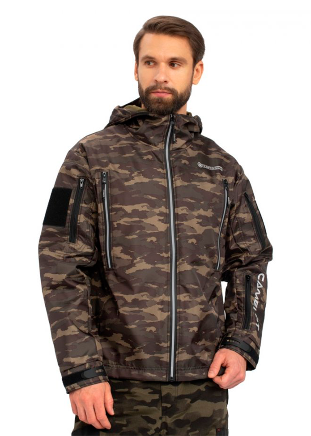 На рукавах карманы с застежкой на тесьму-молнию (2 на левом, 1 на правом), широкие липучки в области плеча