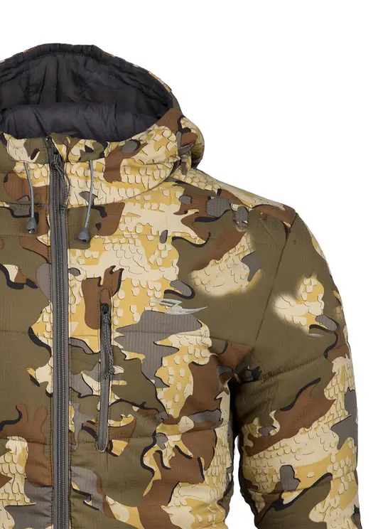 King Hunter EPICENTR – легкая теплая куртка с капюшоном для охоты, рыбалки и путешествий в холодную погоду. Ее можно носить в качестве самостоятельной вещи, а также надевать вторым утепляющим слоем под мембранные костюмы типа Exterior.