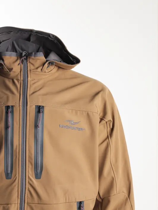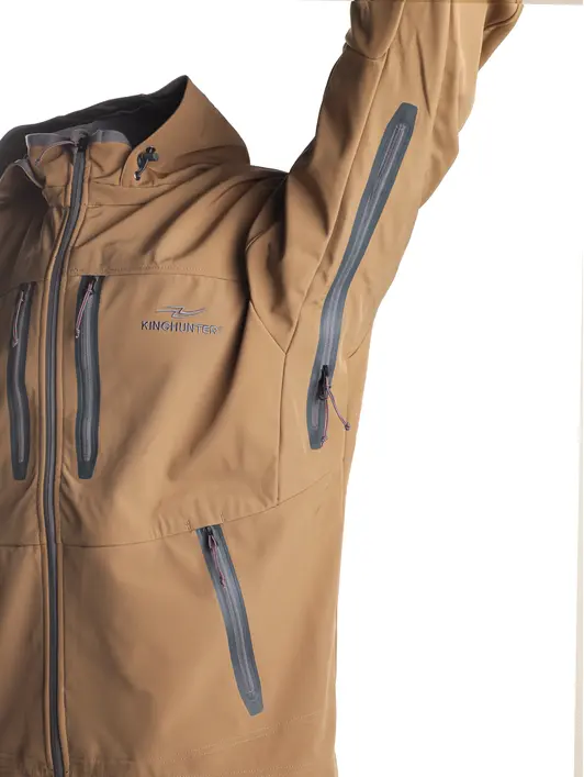 Куртка King Hunter WIND в цвете Sand — это непродуваемая демисезонная куртка, идеально подходящая для выездов на природу, путешествий и повседневной носки в условиях городской среды. Она обеспечивает надежную защиту от холода, ветра и осадков. Защита от холода: Непродуваемый материал Soft-Shell и подкладка из микрофлиса обеспечивают надежную теплоизоляцию при температуре воздуха до -5°С, создавая преграду холоду и ветру. Защита от осадков: Водоотталкивающая пропитка материала DWR не дает куртке промокнуть от дождя и талого снега. Защита от перегрева: Материал куртки хорошо отводит испарения от тела, а вентиляционные клапаны в области подмышек обеспечивают дополнительное проветривание при повышении физической нагрузки.