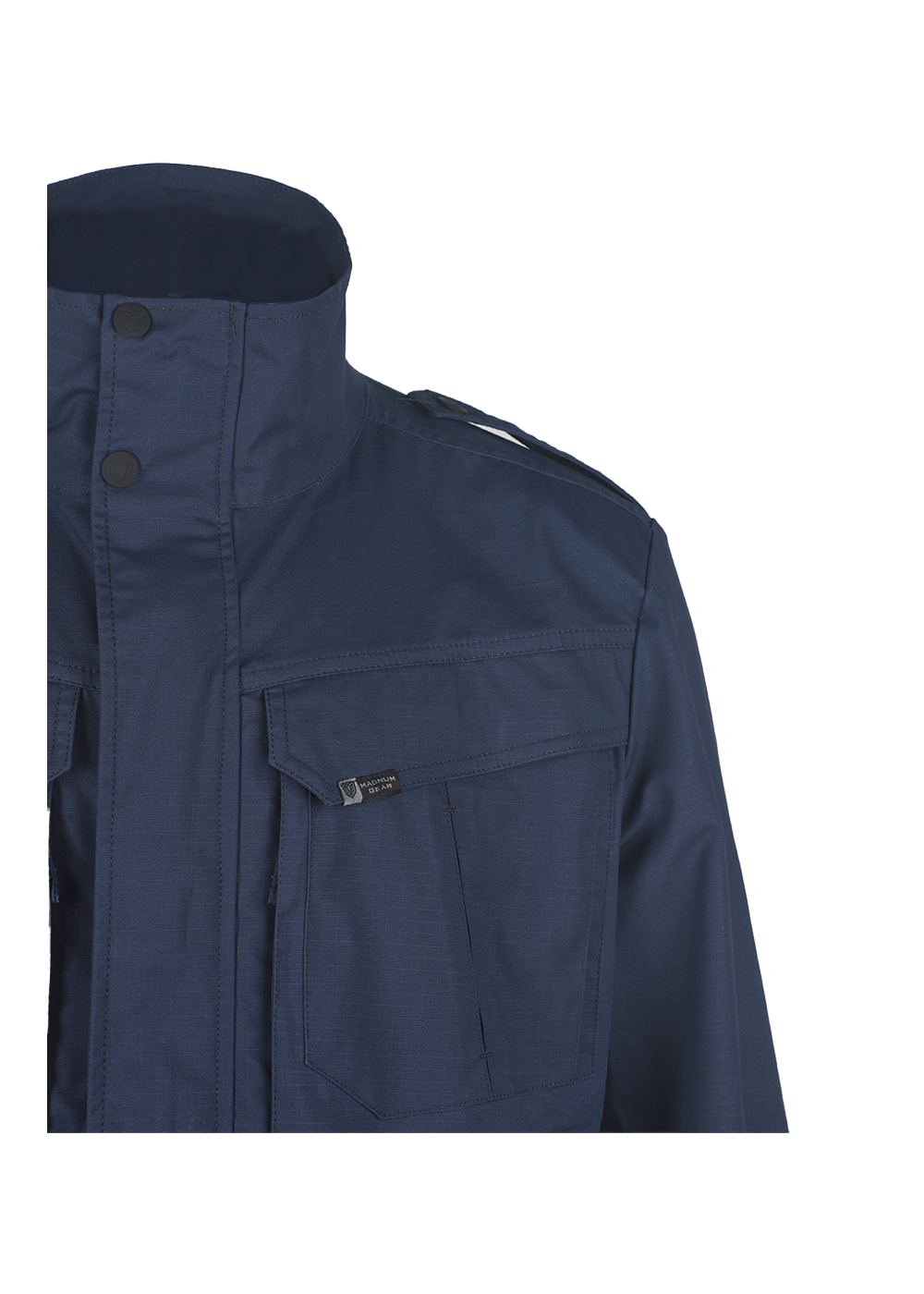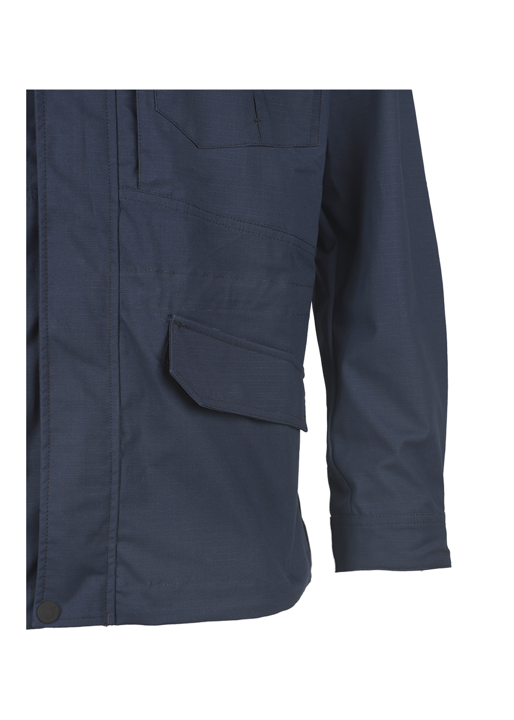 Куртка выполнена из прочной ткани с плетением Rip-Stop, что обеспечивает надежную защиту от механических повреждений. Благодаря влагозащитной WR-обработке вы будете защищены от легких осадков, что делает ее отличным вариантом для непредсказуемой погоды.