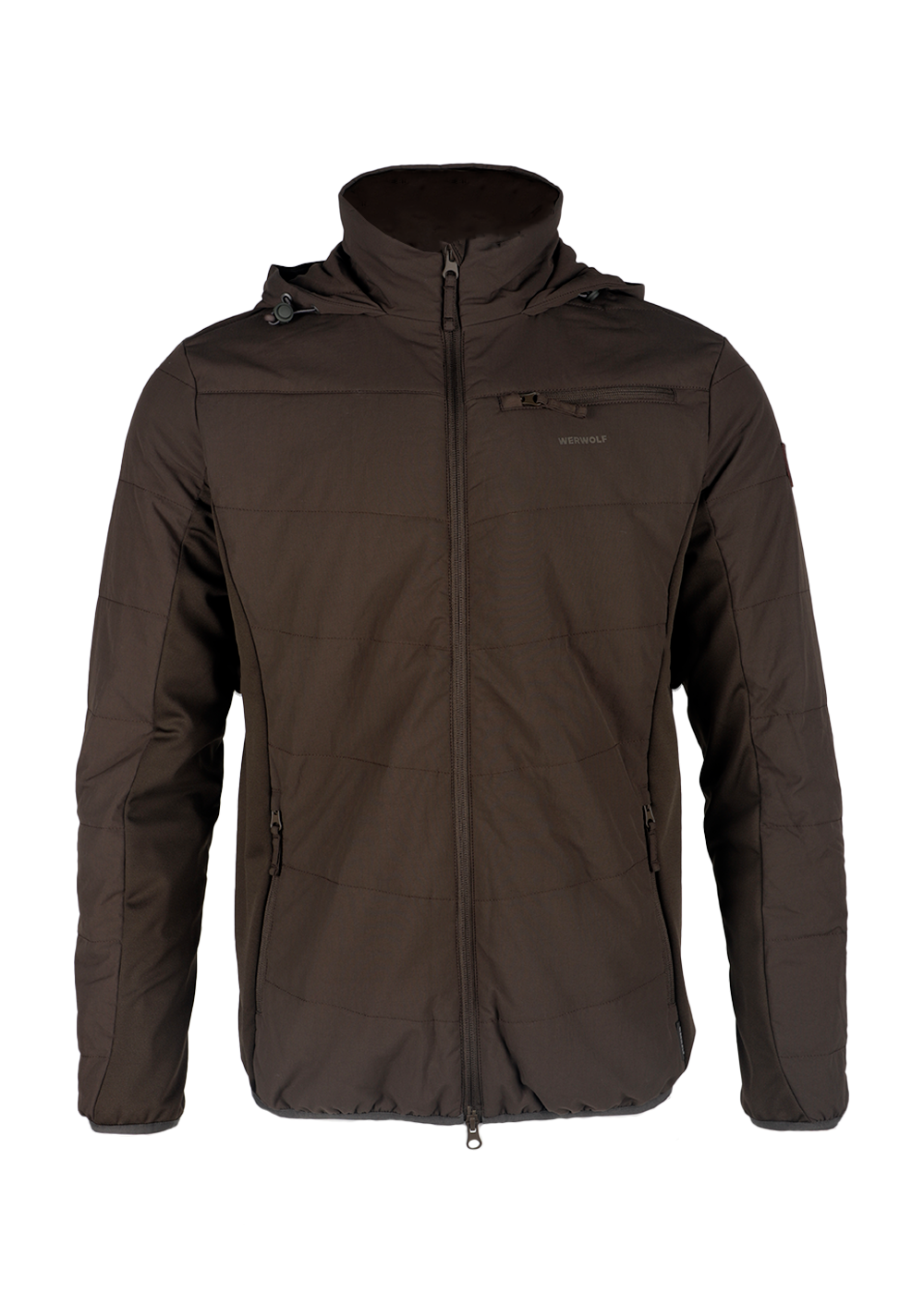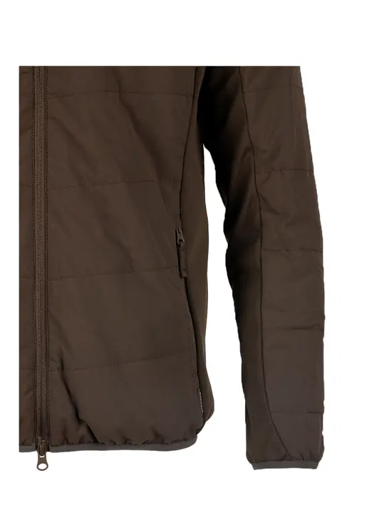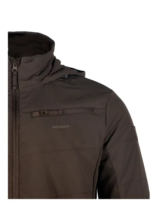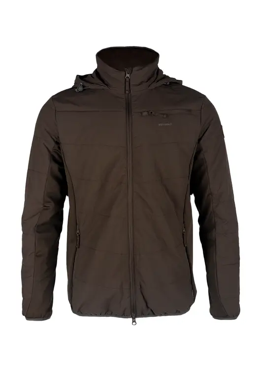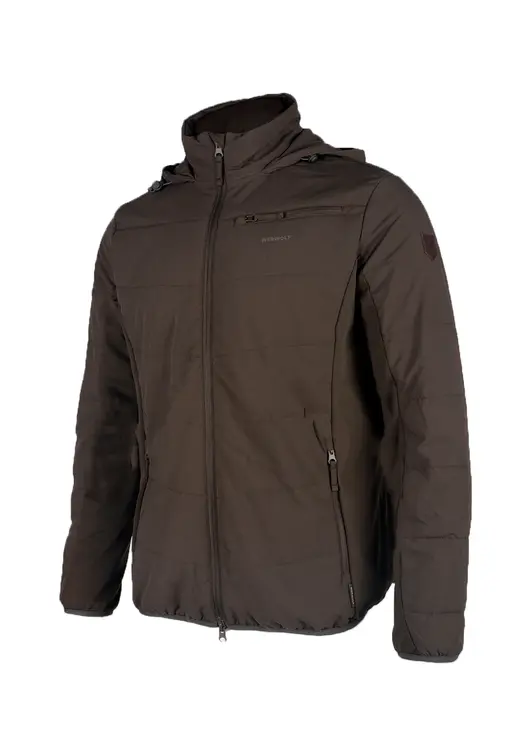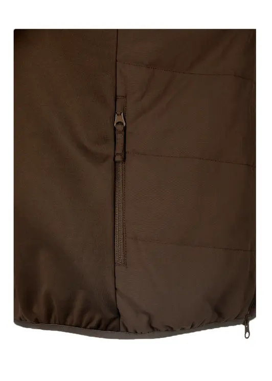 Стеганая куртка Walker softshell табак. Куртка полуприлегающего силуэта со строчкой через всю толщину ткани, 4 функциональных карман: 2 боковых,1 верхний и 1 внутренний, центральная застежка-молния с внутренней ветрозащитной планкой, капюшон не съёмный, регулируемый по объёму эластичным шнуром. Воротник стойка, вставки эластичной ткани по бокам и нижней части рукава, низ рукава и низ куртки окантованы эластичной лентой, фурнитура пластик.