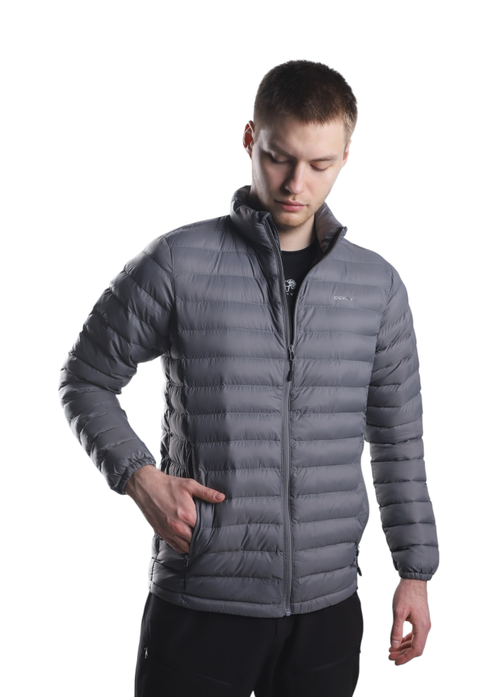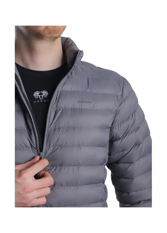 Мужская куртка RX24-359D серого цвета — утеплённая модель из прочного нейлона плотностью 400T/20D с наполнителем из искусственного пуха (220 г), предназначенная для прохладной погоды и активного использования. Куртка обеспечивает отличную теплоизоляцию и защиту от ветра, при этом сохраняя лёгкость и компактность. Продуманный крой гарантирует свободу движений, а функциональные карманы на молнии позволяют удобно разместить необходимые вещи.