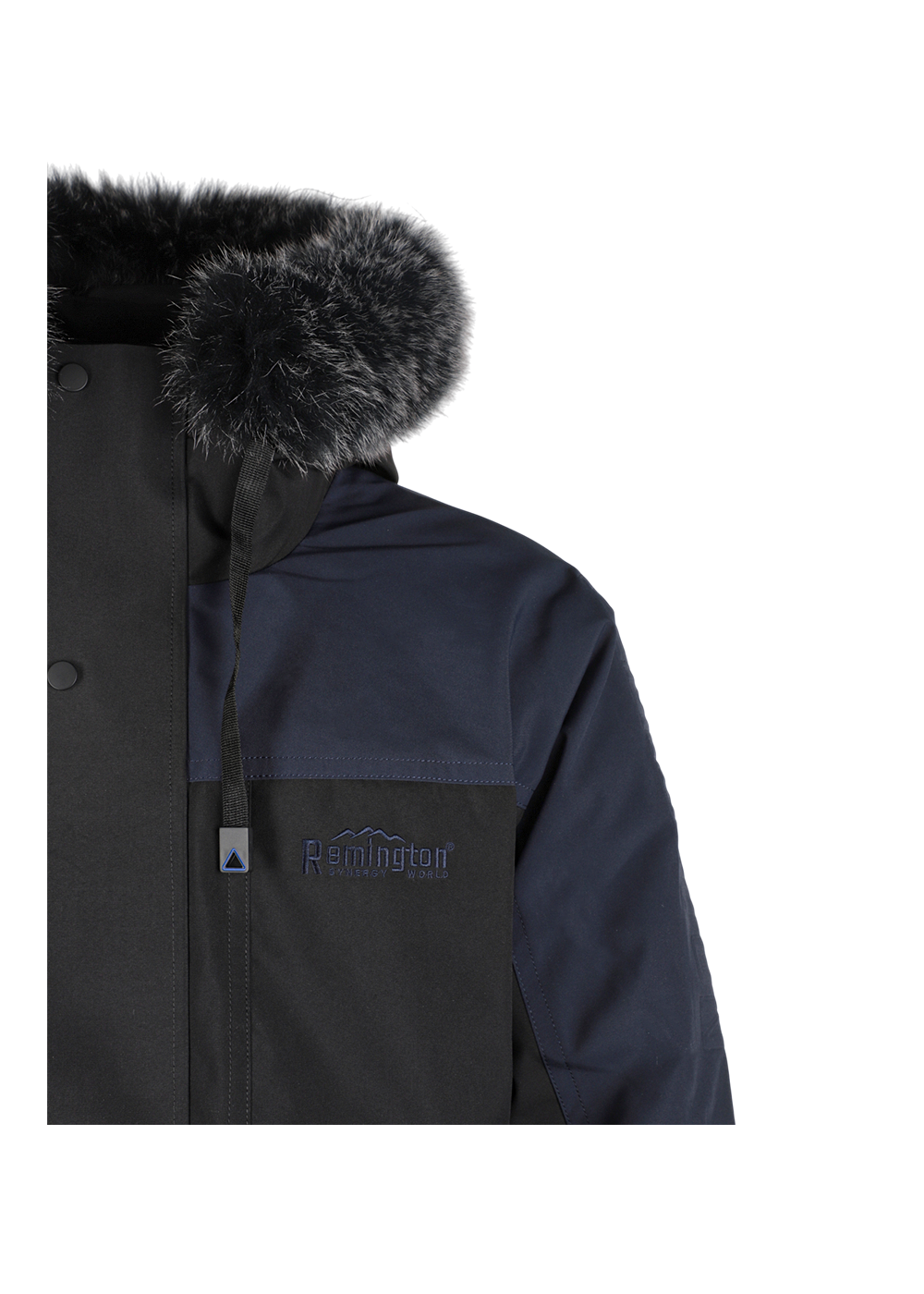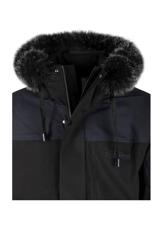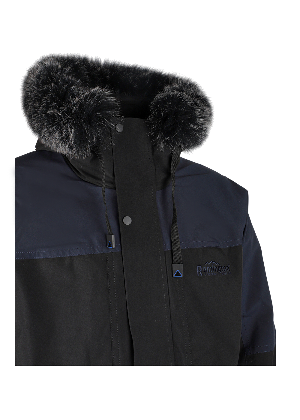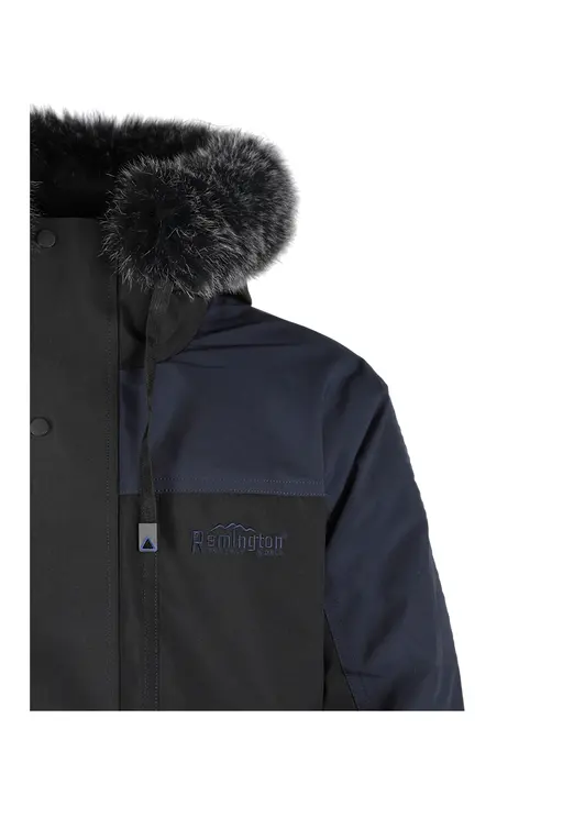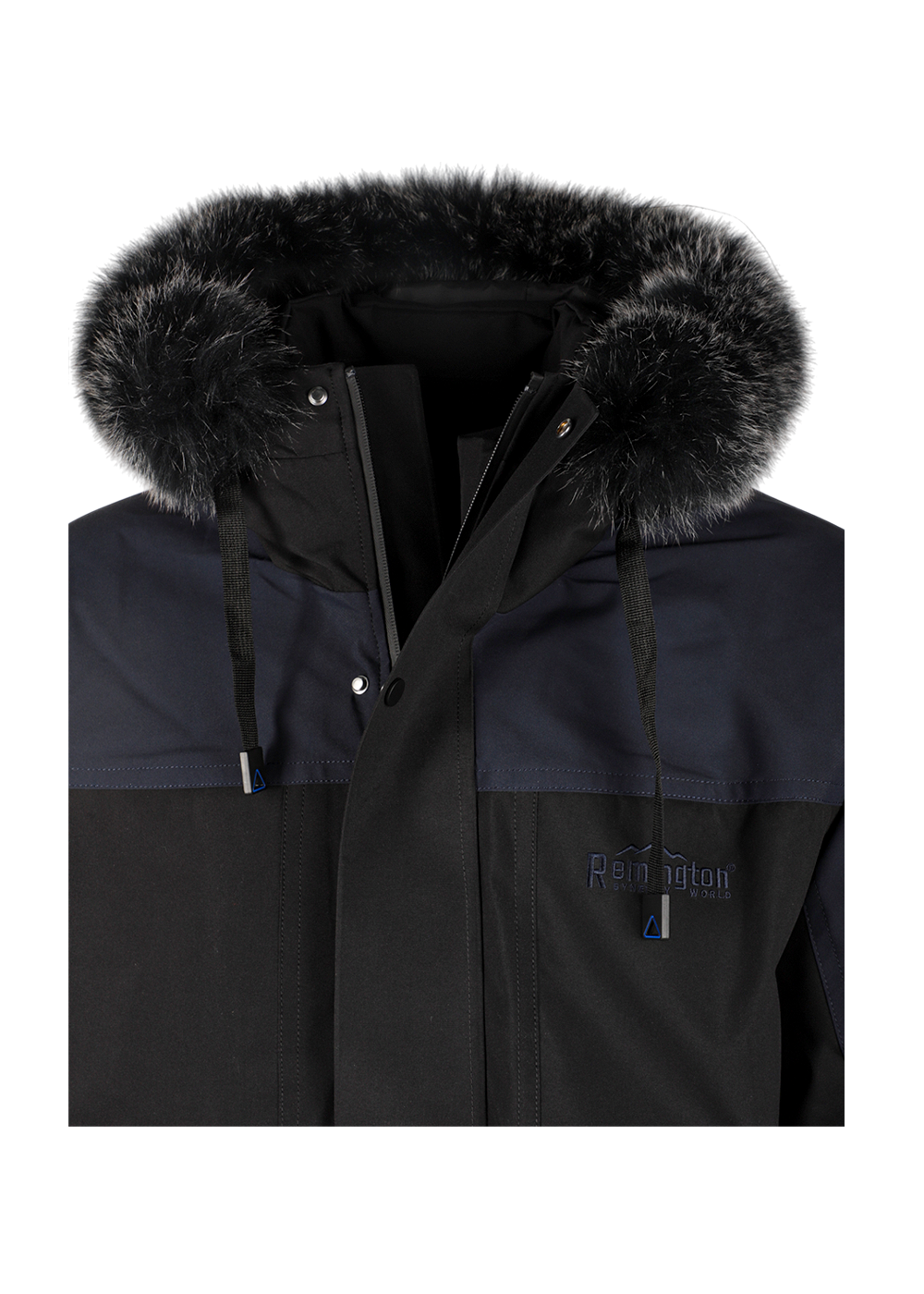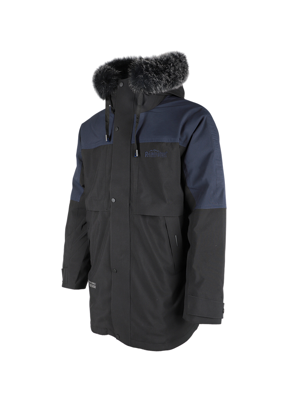Зимняя куртка Remington Versatile Black/Gray — тёплая и практичная модель для использования при температуре до -20°C, выполненная из износостойкого 100% полиэстера с утеплителем из 90% пуха и 10% пера. Куртка оснащена съёмной опушкой капюшона из меха енота для дополнительной защиты от холода, регулируемым по объёму капюшоном со шнурком и ветрозащитными планками на молнии. Флисовые манжеты обеспечивают плотное прилегание и защиту от ветра. Модель имеет два наружных и два внутренних кармана для хранения личных вещей, что делает её удобной для активного отдыха, охоты и рыбалки в холодное время года.