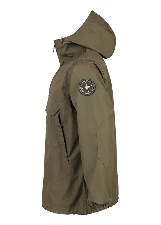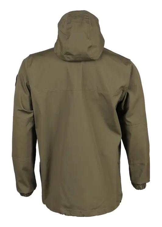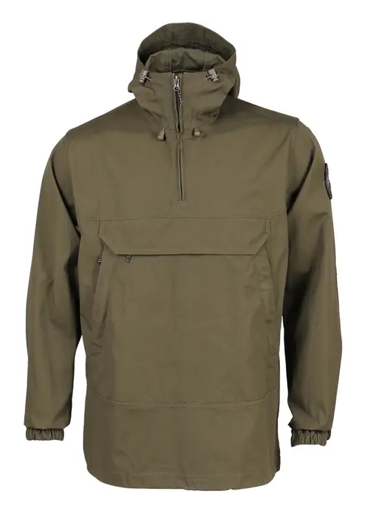 «Анорак-2» изготовлен из высококачественного брезента, которого тоже коснулись высокие технологии. Это все та же «плотная льняная, полульняная или хлопчатобумажная ткань, пропитанная водоупорными и противогнилостными составами», но она стала настолько легкой и тонкой, что с первого взгляда трудно понять, что перед вами брезент. Брезент прекрасно дышит, защищает от ветра и мелкого дождя (в сильный дождь нужна дополнительная защита) или снега. Кроме того, брезент обладает такими свойствами как огнестойкость, стойкостью к гниению и истиранию, имеет повышенную прочность, высокую износостойкость. При намокании лен сильно набухает, еще увеличивая прочность и водостойкость брезента.