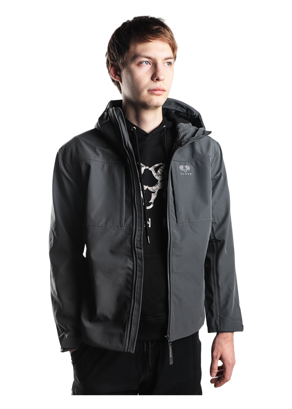 UCHUR Softshell Jacket цв. Серый - это стильная и функциональная куртка, которая идеально подходит для активного отдыха и повседневной носки. Она выполнена из высококачественного материала Softshell, который отлично тянется в четырех направлениях и обеспечивает комфорт, защиту от непогоды.