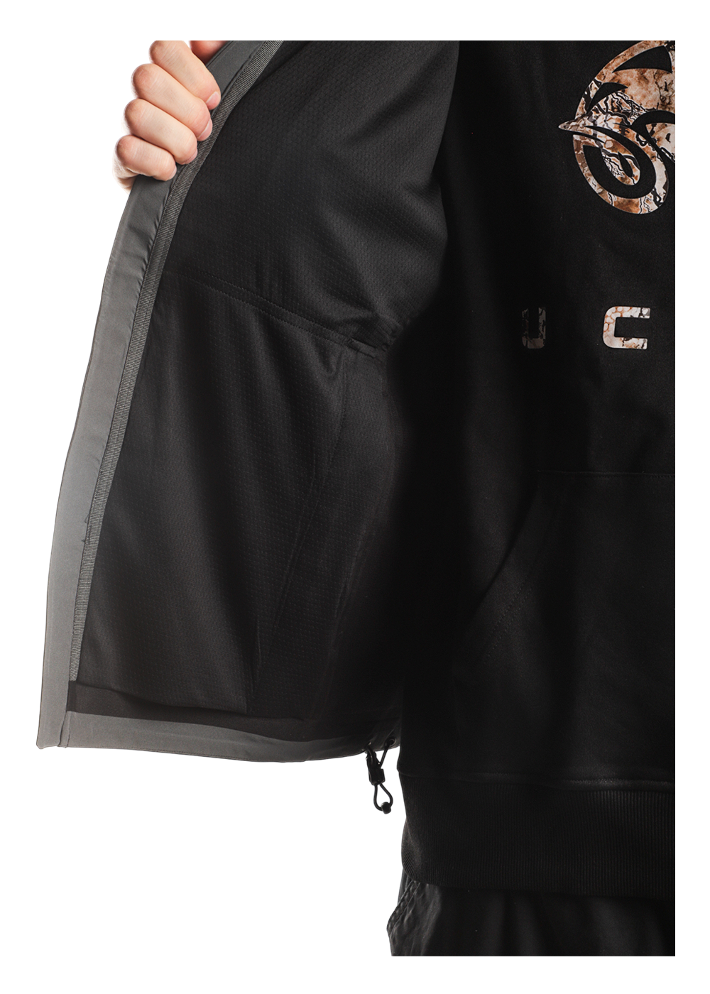 - Капюшон регулируется по объёму эластичными шнурами;