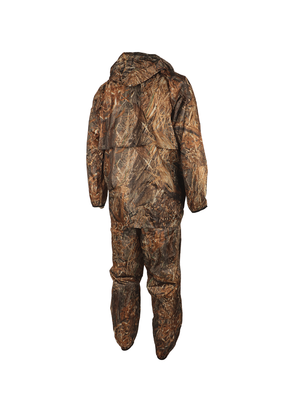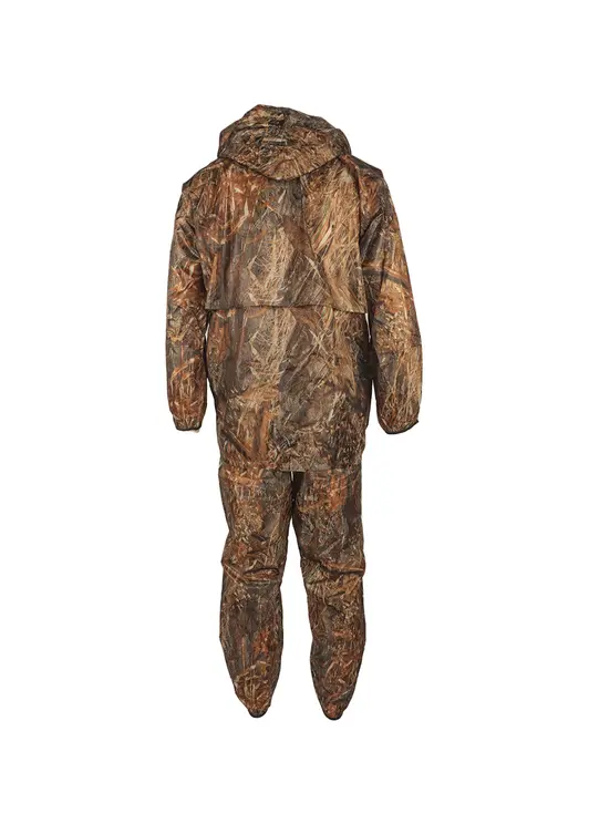 Летний костюм Роса предназначен для рыбалки и выхода на природу. Костюм состоит из куртки с капюшоном и брюк на резинке. Костюм изготовлен из непромокаемого материала Таффета PU с проклеенными швами. Горячая проклейка швов обеспечивает полную защиту от воды, ветра и грязи. Куртка с капюшоном на двусторонней молнии под ветрозащитной планкой на пластиковых кнопках. По контуру лица капюшон утягивается при помощи шнура. На спинке предусмотрено вентиляционные отверстия под клапаном. В куртке имеется два кармана. На рукавах предусмотрены манжеты рукавов на резинке. Брюки прямые, собраны на резинке по поясу и на манжетах. Плащ Роса упакован в блистер PVC. Для комфортного хранения и транспортировки предусмотрен мешочек.