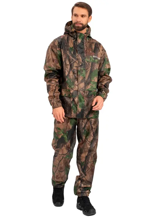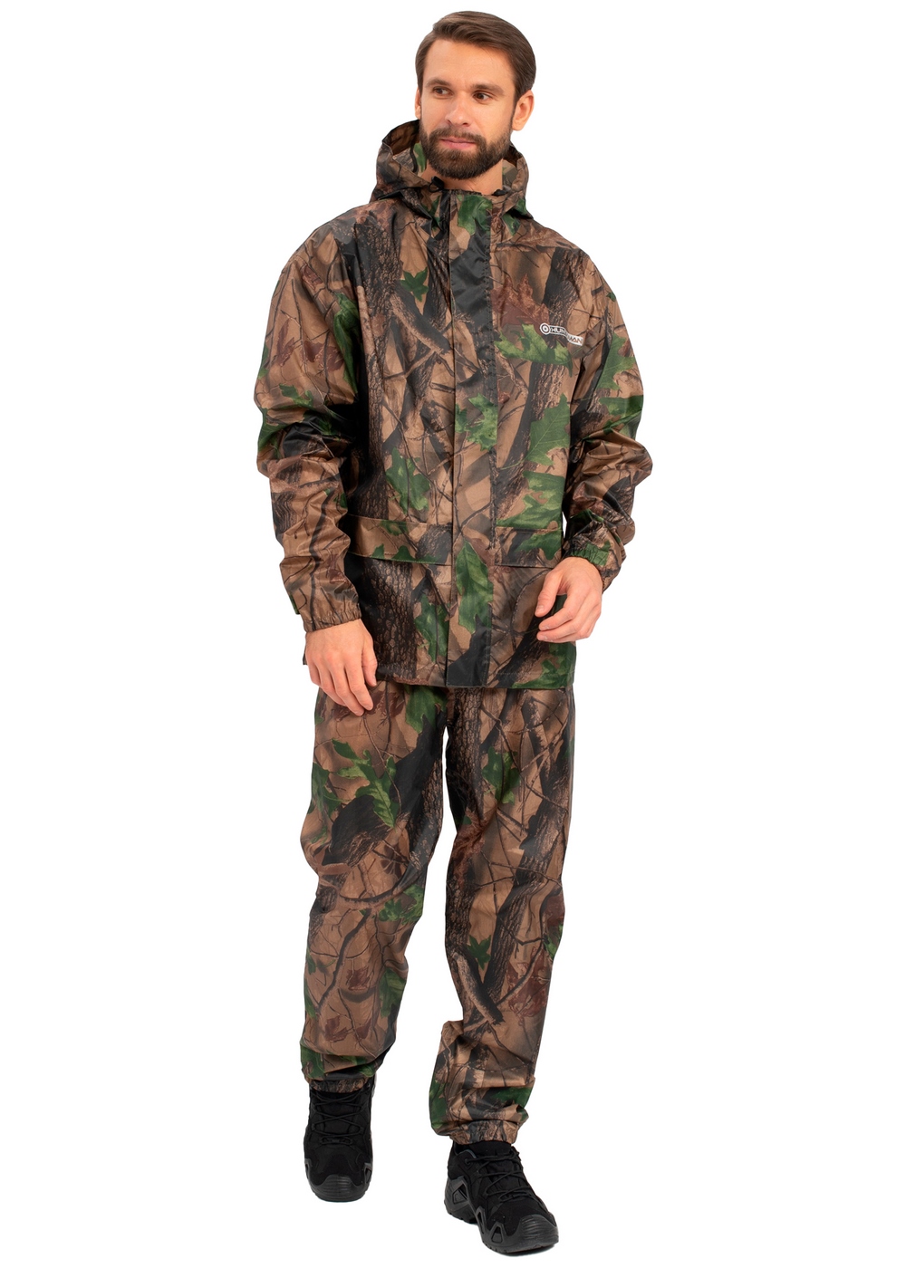 Костюм изготовлен из тяжелой и прочной ткани. Прекрасная защита от дождя и ветра. Надевается поверх любой одежды. Показатели водостойкости -20000 мм водяного столба. Особенности модели: - цельнокроеная куртка (изначальное отсутствие швов на плечах) на молнии под ветрозащитной планкой - капюшон стягивается шнуром - два нижних прорезных кармана под планкой - пояс, рукава и низ брюк на резинке - имеется чехол с петлей для ношения на поясе - не промокает