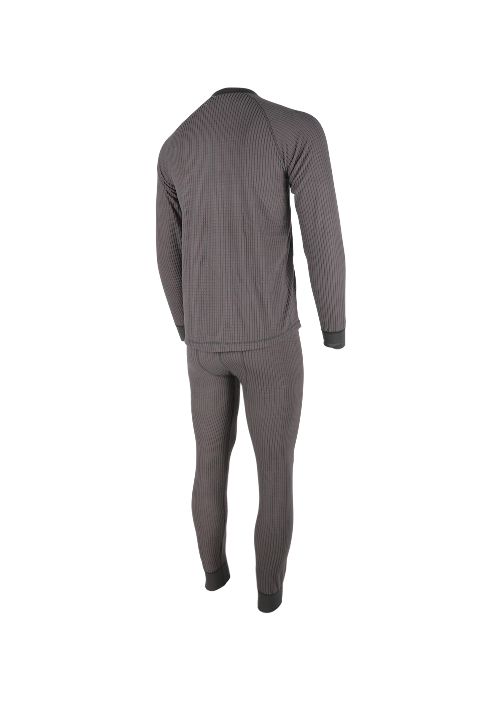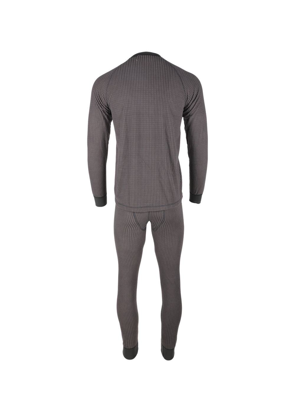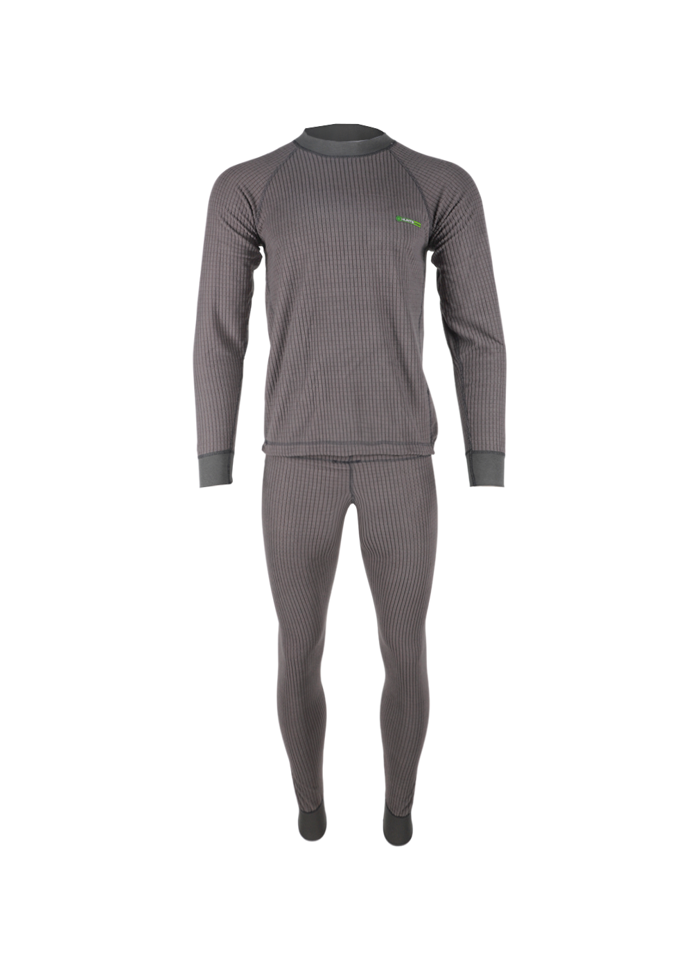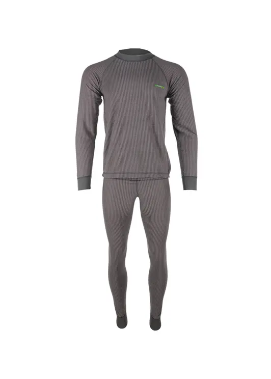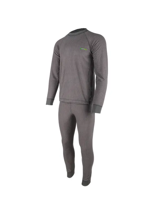 Термобелье Thermoline из фактурного флиса серого цвета — тёплое нательное бельё повышенной плотности (160 г/м²), предназначенное для использования при экстремально низких температурах до -40°C. Материал эффективно удерживает до 85% тепла тела и отводит влагу во внешние слои одежды. Изделие гипоаллергенно, выполнено по технологии без внутренних швов для максимального комфорта при носке. Благодаря особой структуре флиса позволяет сократить общий вес экипировки до 30% без потери теплозащитных свойств. Особенно эффективно в сочетании с мембранными костюмами и влагоотводящей одеждой второго слоя.