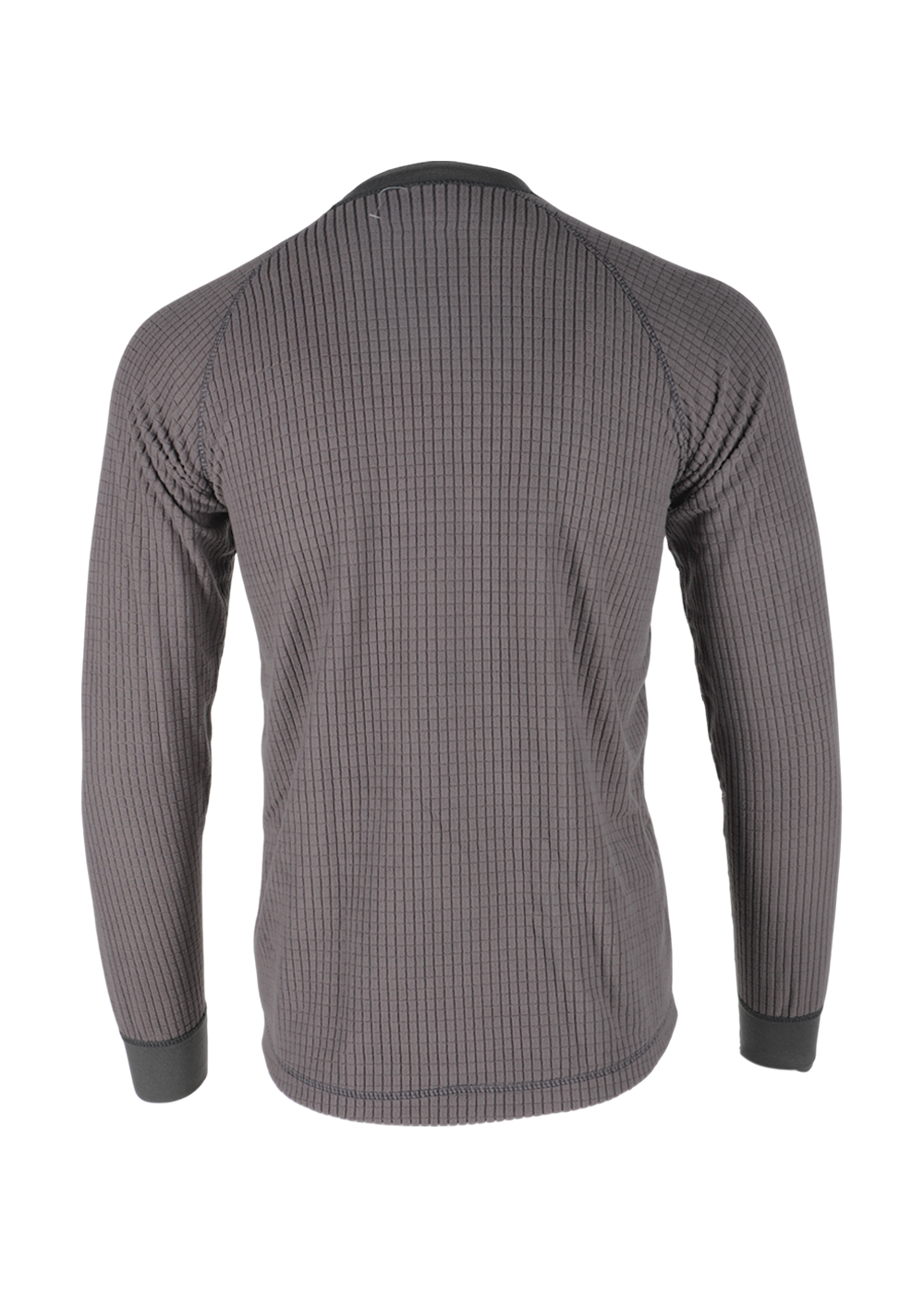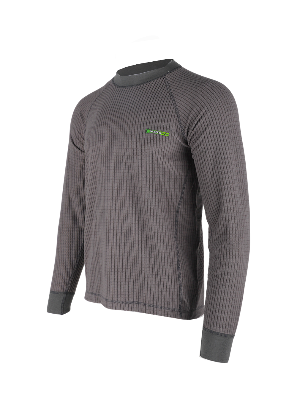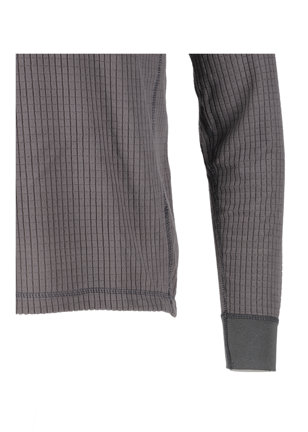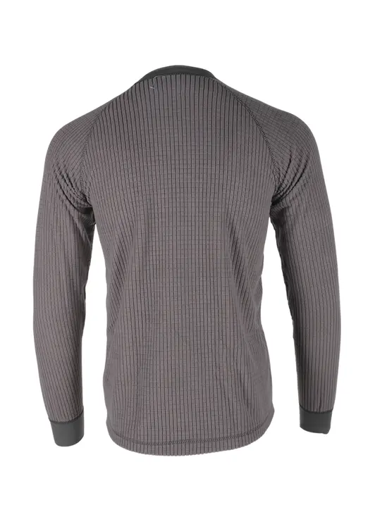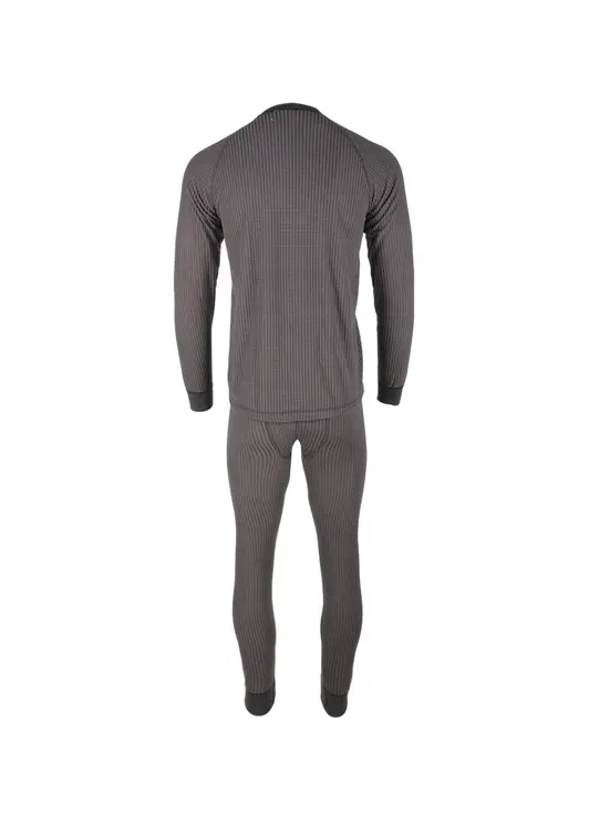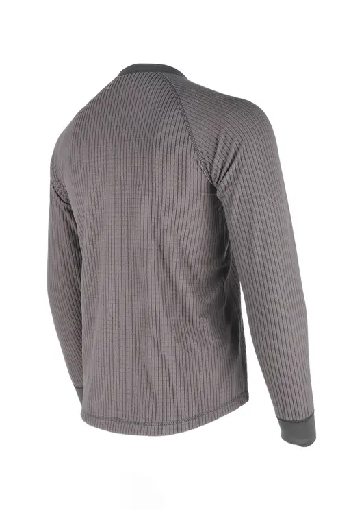 Термобелье Thermoline из фактурного флиса серого цвета — тёплое нательное бельё повышенной плотности (160 г/м²), предназначенное для использования при экстремально низких температурах до -40°C. Материал эффективно удерживает до 85% тепла тела и отводит влагу во внешние слои одежды. Изделие гипоаллергенно, выполнено по технологии без внутренних швов для максимального комфорта при носке. Благодаря особой структуре флиса позволяет сократить общий вес экипировки до 30% без потери теплозащитных свойств. Особенно эффективно в сочетании с мембранными костюмами и влагоотводящей одеждой второго слоя.