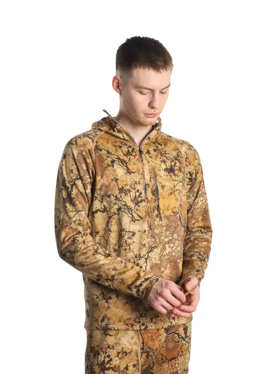 Термобелье UCHUR THERMAL UNDERWEAR — технологичная модель из высокоэластичного флиса, обеспечивающий температурный режим до -30°C, который сохраняет тепло без перегрева и активно отводит влагу благодаря канальной структуре. Сквозные петли для большого пальца фиксируют рукава в любом положении, а обработка SYT NEUTRAL сохраняет свежесть материала при многодневном использовании в условиях отсутствия доступа к гигиене.