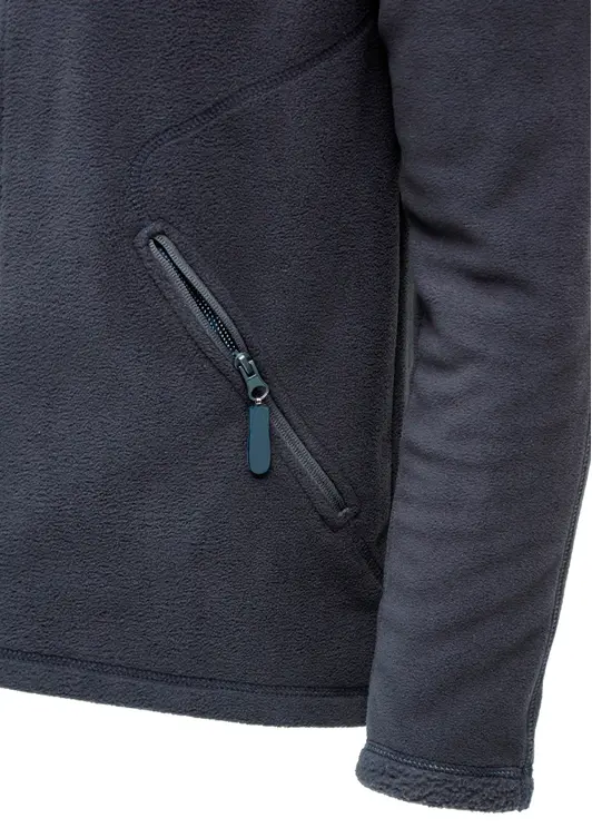 Флиска с высокой горловиной и карманами на молнии, в которых можно хранить мелочи. Эластичные манжеты и подол обеспечивают хорошую посадку и защиту от холодного воздуха.