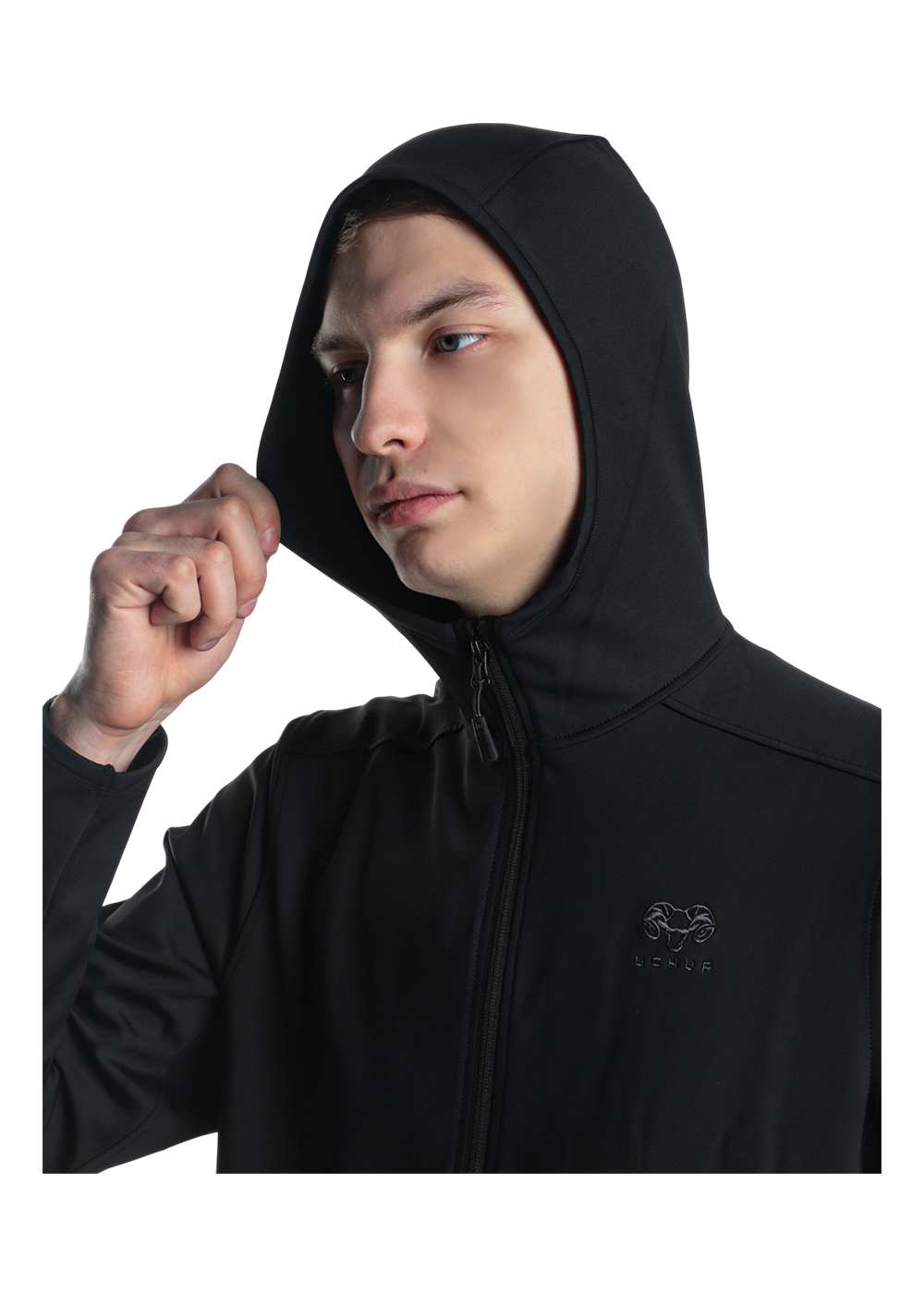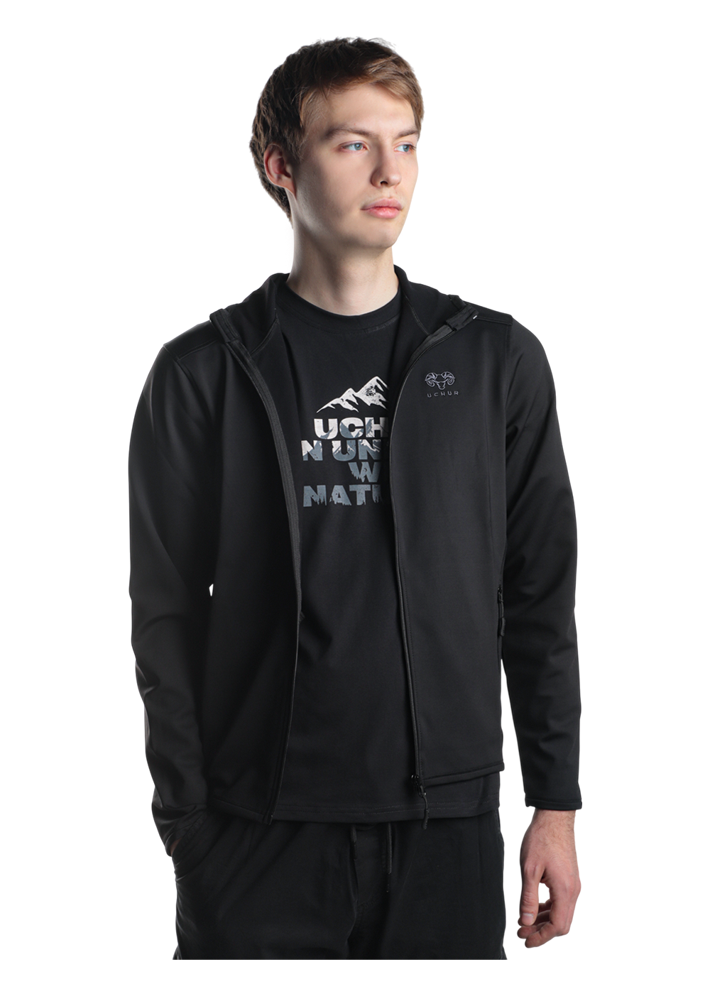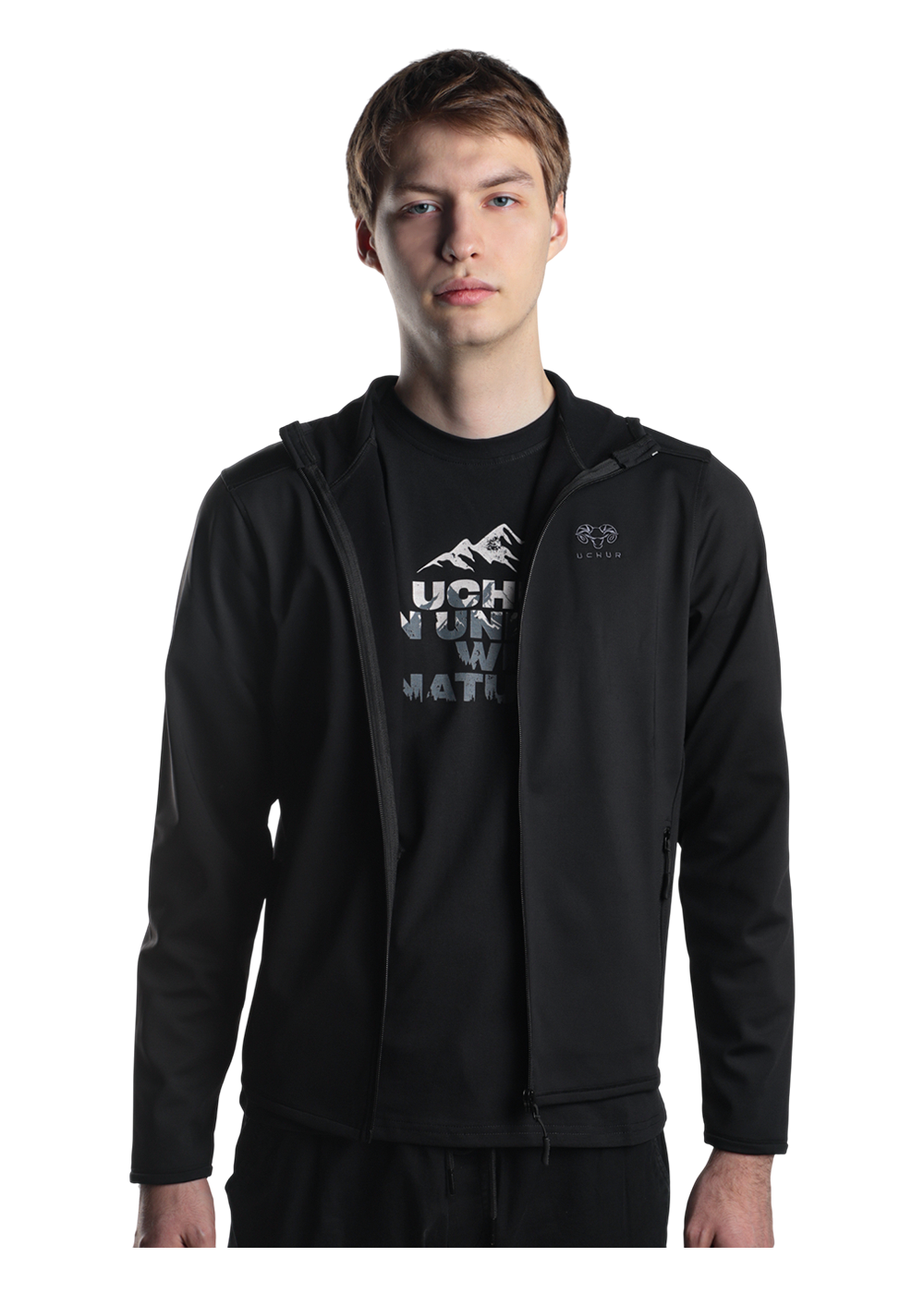 Толстовка с капюшоном UCHUR HORIZON, цв. Черный - лёгкая и прочная толстовка из дышащего технологичного материала, устойчивая к износу и сохраняющая форму при активном использовании. Продуманный универсальный крой подходит для городской носки и активного отдыха, легко сочетается с другими слоями одежды. Усиленные швы повышают долговечность, а терморегулирующий материал отводит влагу и поддерживает комфортную температуру тела.