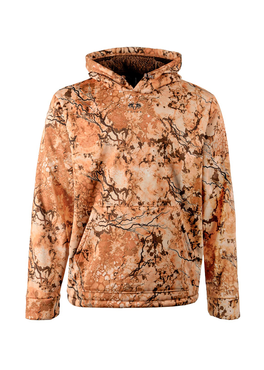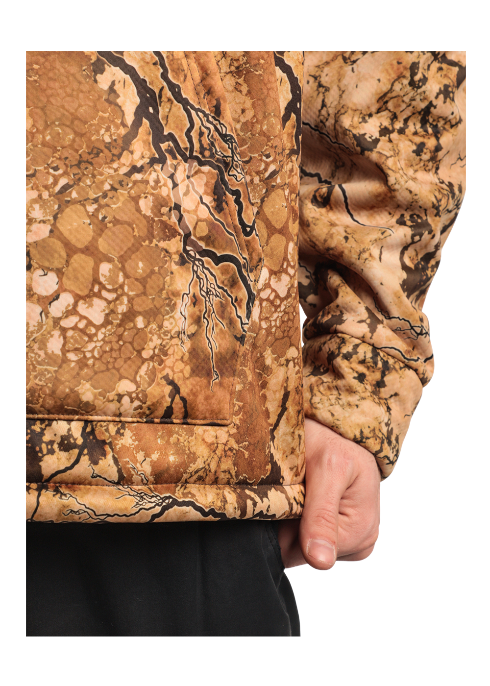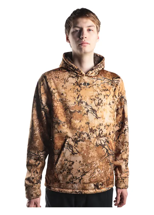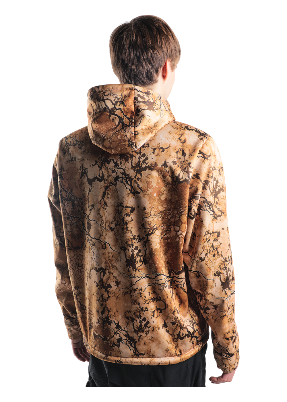 Ветрозащитная толстовка имеет удобный крой, не сковывающий движений, и оснащена капюшоном. Верхний материал отлично сдерживает влагу. Толстовка окрашена в фирменный принт с аккуратно вышитым логотипом бренда, который придаёт ей уникальный вид. Подклад толстовки выполнен из плотного ворсистого (кораллового) флиса для более лучшего сохранения и генерации тепла.