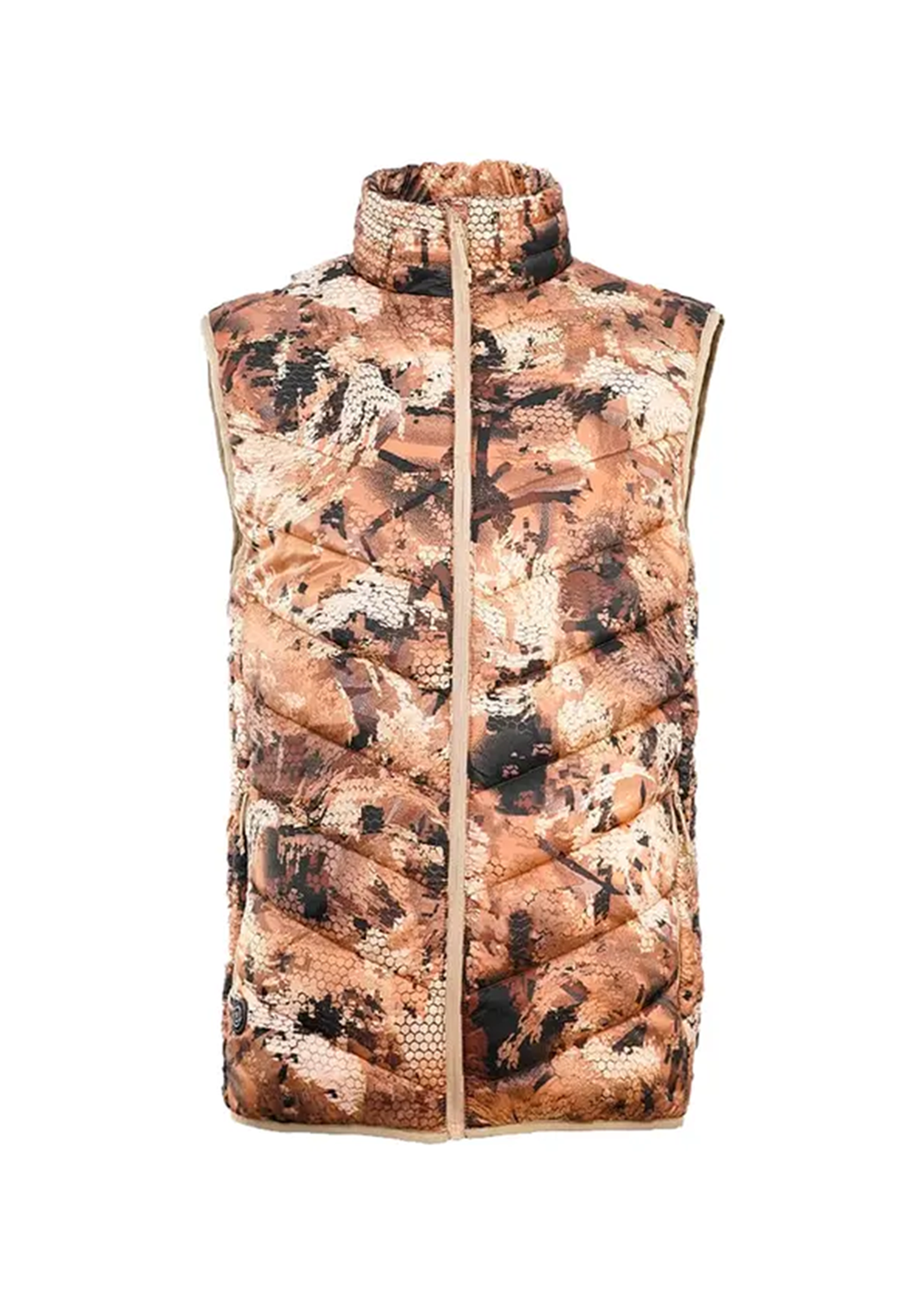 Высокотехнологичный жилет с электрическим подогревом работает от power bank (батареи с USB разъемом), который устанавливается в специальный карман и подключается с помощью встроенного USB кабеля. Нагревательные элементы повышенной износостойкости от поставщика армии КНР. Жилет имеет современный THERMOLOFT утеплитель, поэтому даже без работы нагревающих элементов имеет согревающий эффект. Облегающий крой необходим для максимальной эффективности работы нагрева, а также удобства одевать под верхнюю одежду в холодную погоду. Идеально подходи для охоты на засидках осенью и зимой. А так же отлично подойдет для весенней охоты из скрадка. Расположение греющих элементов: один греющий элемент расположен на спине в области поясницы и два на груди. Включатель-регулятор температуры греющих элементов с темя уровнями нагрева от 35°C до 55°C.