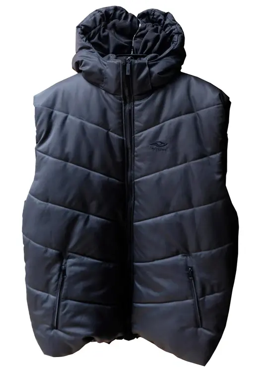 Жилет с изолирующим кроем и водоотталкивающей пропиткой снабжен воротником-стойкой, съемным капюшоном и очень практичными карманами: 2 вертикальными карманами на молнии.