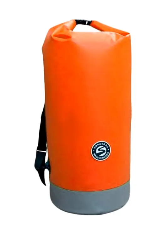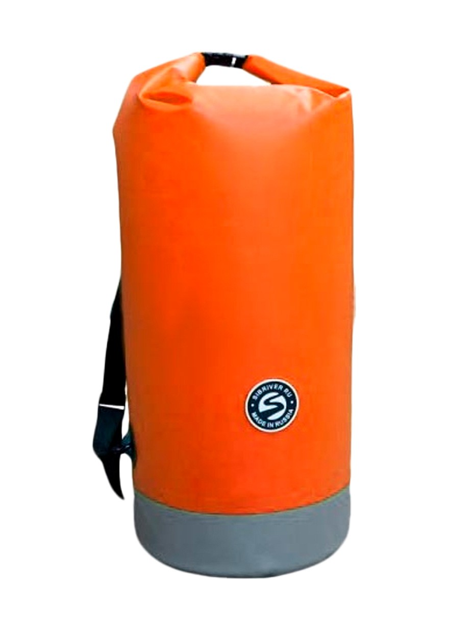 Герморюкзак SibRiver объёмом 100 литров выполнен в оранжевом цвете. Он имеет усиленное дно из материала толщиной 1,2 мм. В комплекте идут компрессионные стропы для крепления груза и дополнительный клапан для увеличения объёма.