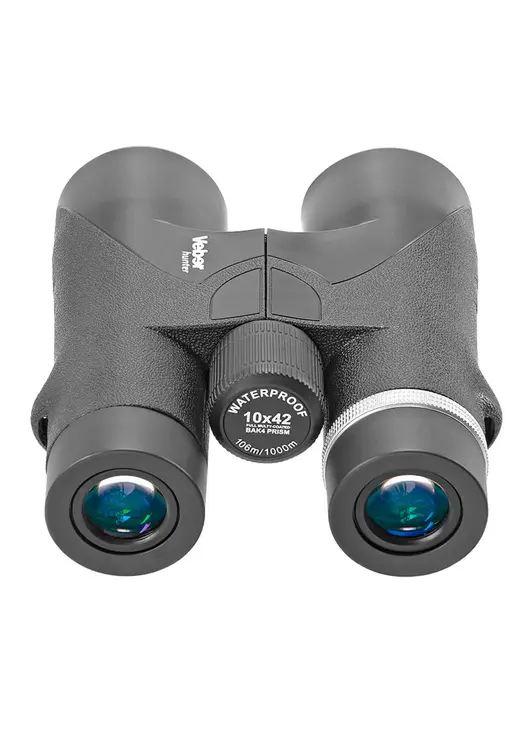 Туристический бинокль 10*42 Veber Hunter с увеличением 10 крат и диаметром объектива 42 мм сделан специально для любителей активного отдыха – охотников, рыбаков, искателей приключений. Бинокль на основе призм Roof выполнен в легком и компактном обрезиненном пылевлагозащищенном корпусе. Отличная четкая и ясная картинка в окуляре обеспечивается многослойным просветлением FMC (fully multi-coated) всех оптических элементов. Центральная фокусировка позволяет быстро наводиться на объект, управляя системой фокусировки даже одной рукой. Комплектные нетеряемые резиновые крышки окуляра и объектива и полужесткая сумка-кейс гарантируют безопасную транспортировку наблюдательного прибора.