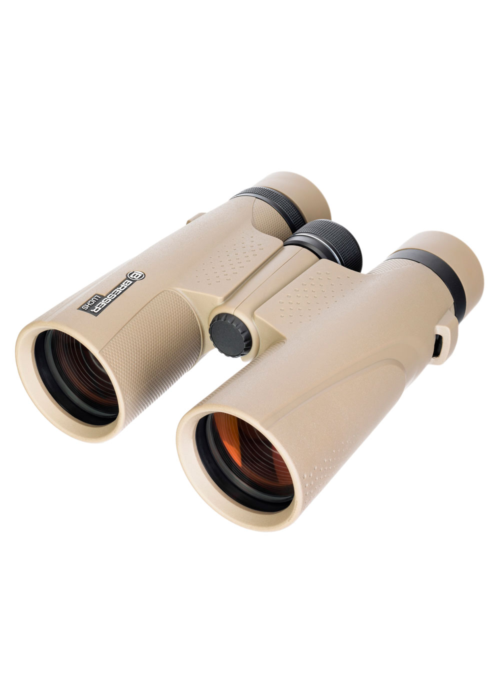 Bresser Lynx 10x42 – 10-кратный полевой бинокль в брызгозащищенном корпусе. Благодаря широкому обзору с его помощью удобно наблюдать за птицами и животными, обозревать окрестности, контролировать границы охраняемых территорий. Бинокль не вызывает усталости при использовании с рук, так как обладает сравнительно небольшим весом и компактными габаритами, но при необходимости его можно установить на штатив.